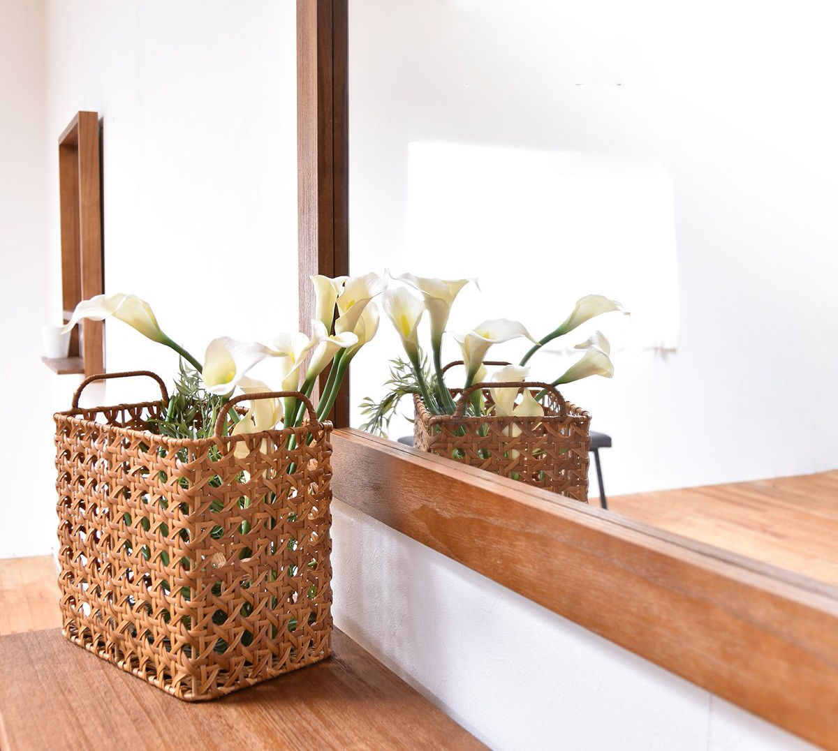 リビング、エントランス、サロンなどの壁に横向きにミラーを掛けてみると、空間に広がりを持たせることができ、一味違ったモダンな雰囲気になります。