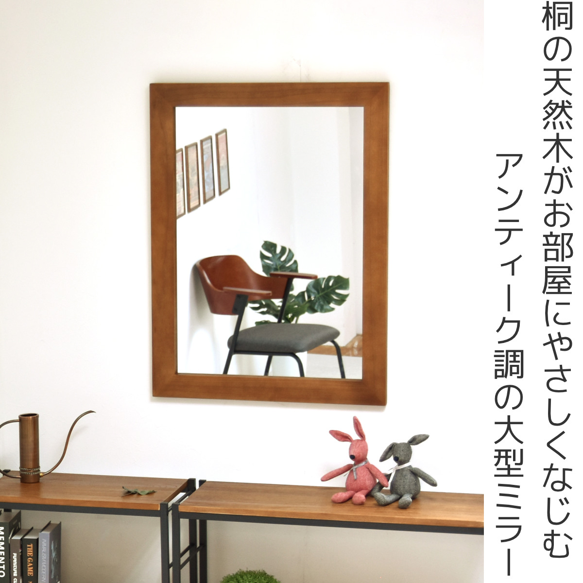 桐の天然木を贅沢に使った上質なウォールミラーです。無垢の桐材を磨いて表面に凹凸を付ける事で木肌感が強調され、アンティーク調に仕上がっております。シンプルで洗練されたデザインが美しく、お部屋で存在感を放ちます。