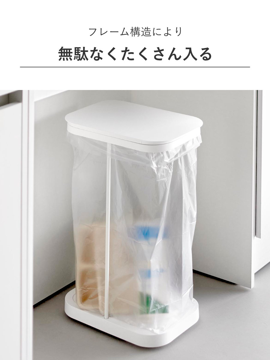 45Lゴミ袋がピッタリのフタ付きゴミ箱です。本体がフレームだけなので、大きなペットボトル等もゴミ袋いっぱいまで入れることができます。