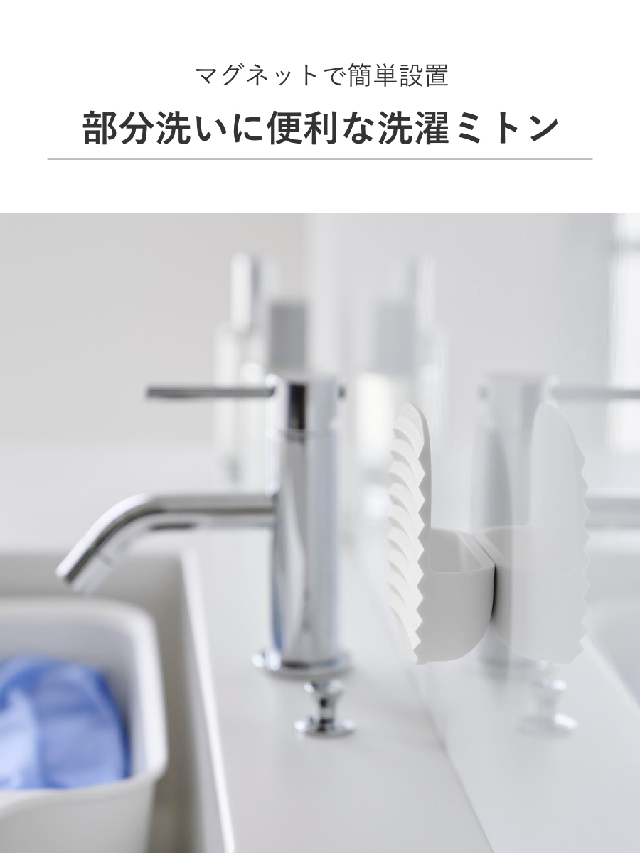 マグネットが付く壁面に簡単に設置できる洗濯ミトンです。サッと使いたいときに手に取りやすい、使いやすい手のひらサイズ。使い終わったあとは洗濯機や洗濯ラックにピタッと貼り付けて収納できるため、置き場所に困りません。