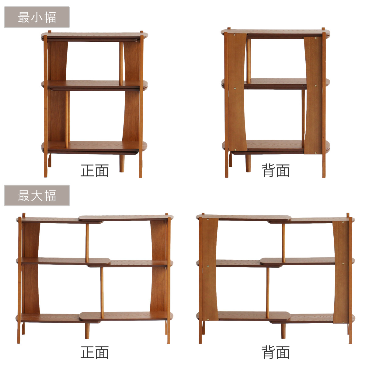 オープンラック 幅65~108cm 天然木 オーク 木目調 伸縮式 スぺパ