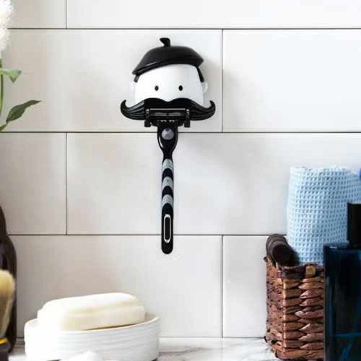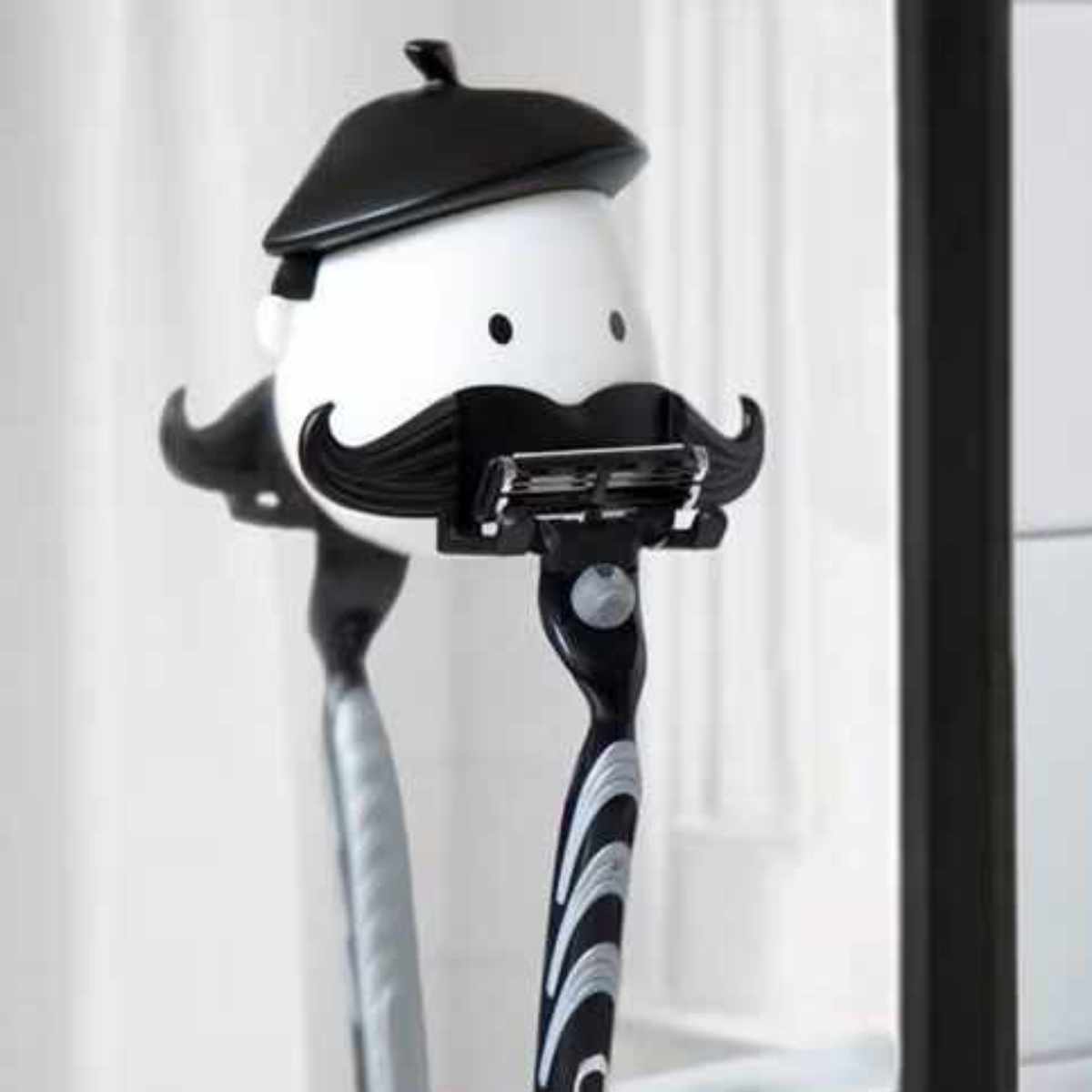 場所を取らないコンパクトサイズで剃刀をしっかり支えてくれる頼もしい存在です。洗面台にちょっとしたユーモアをプラスします。
