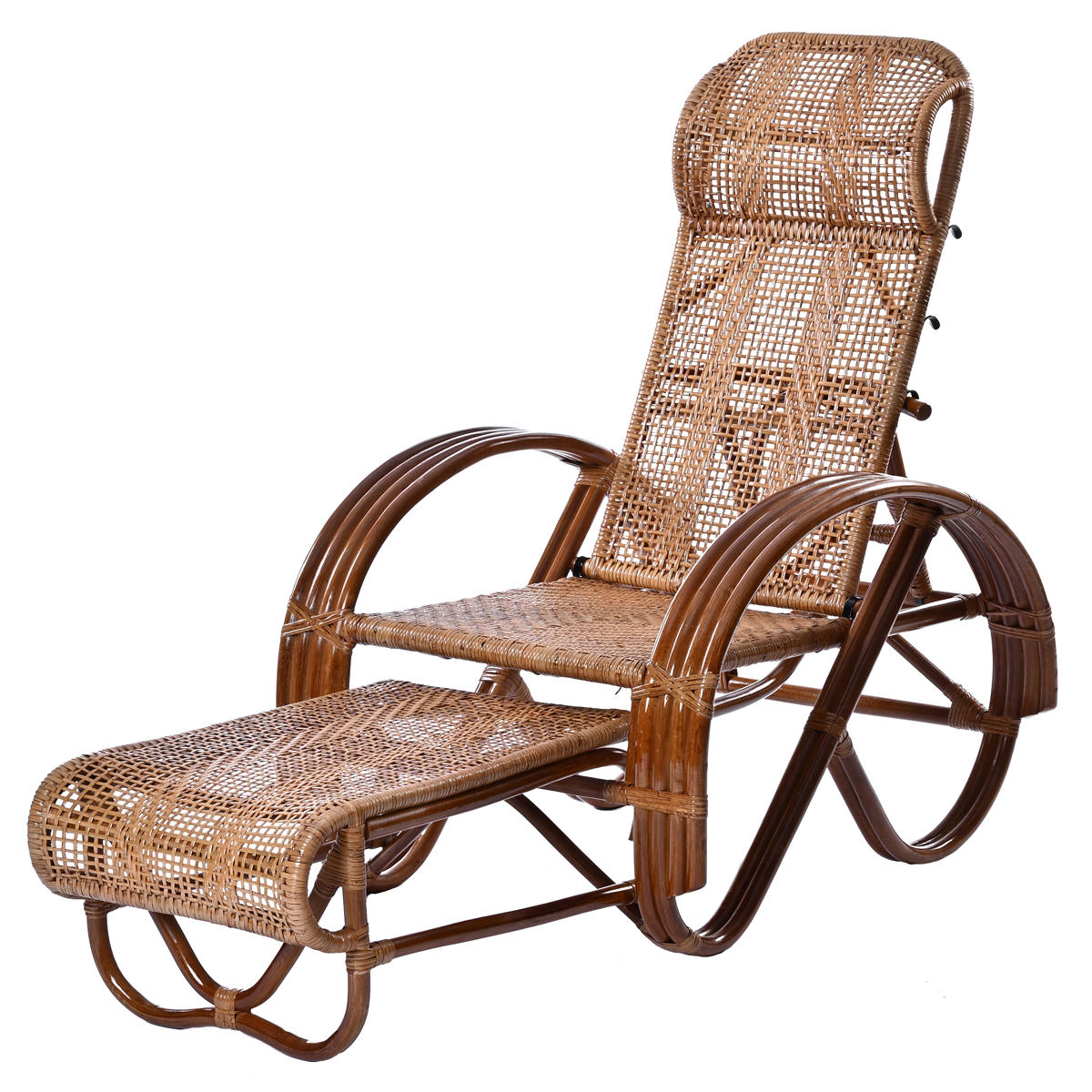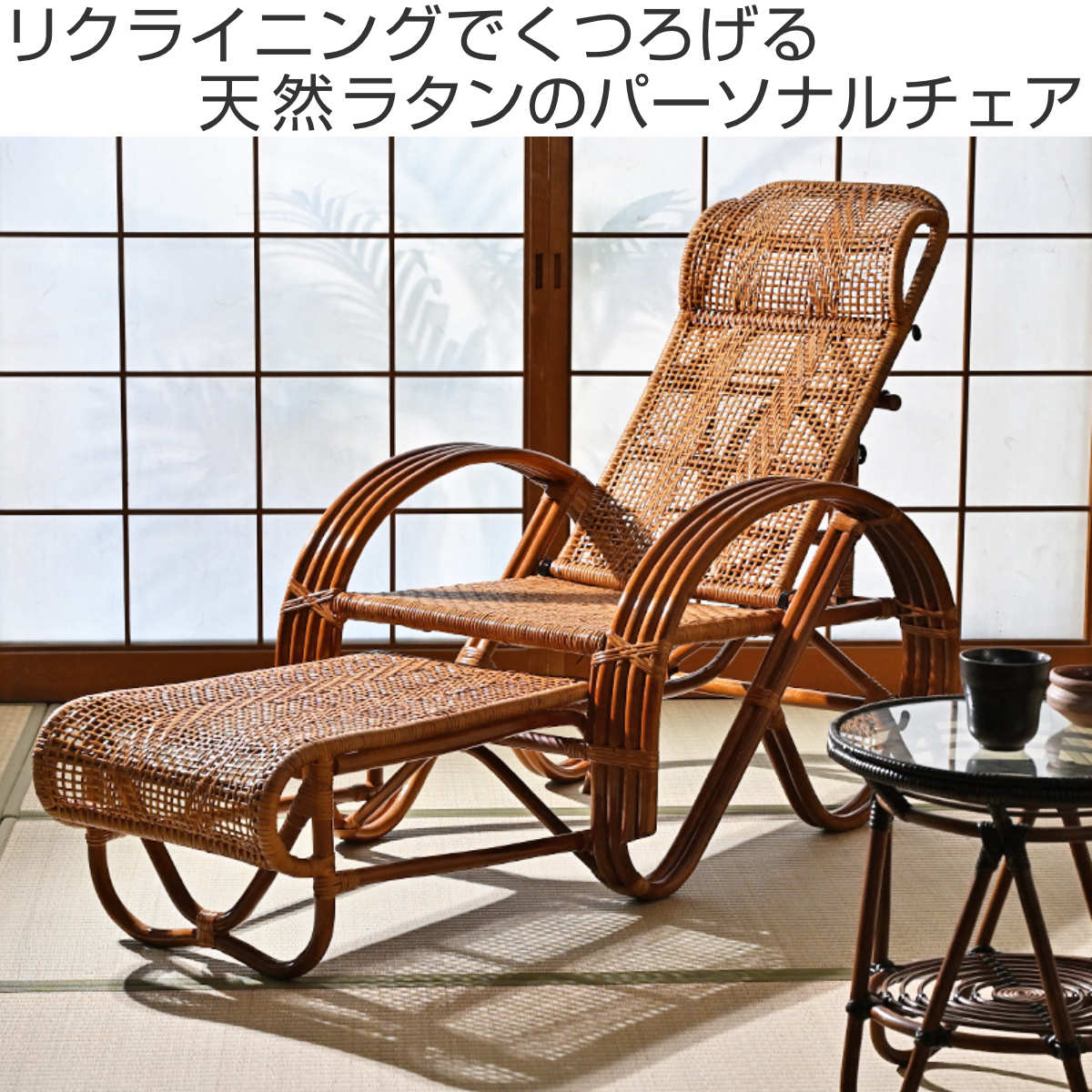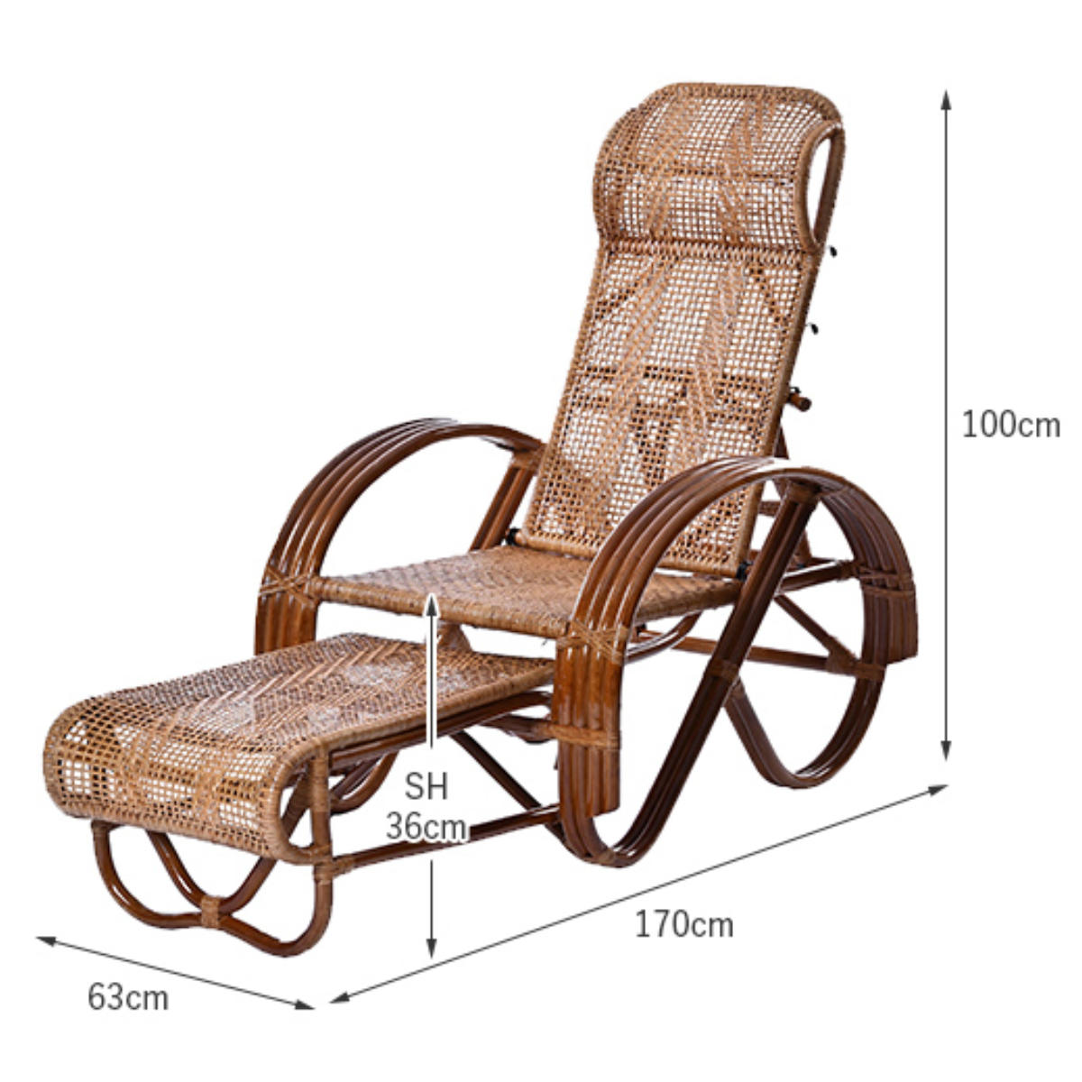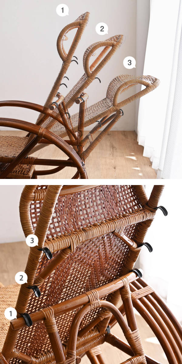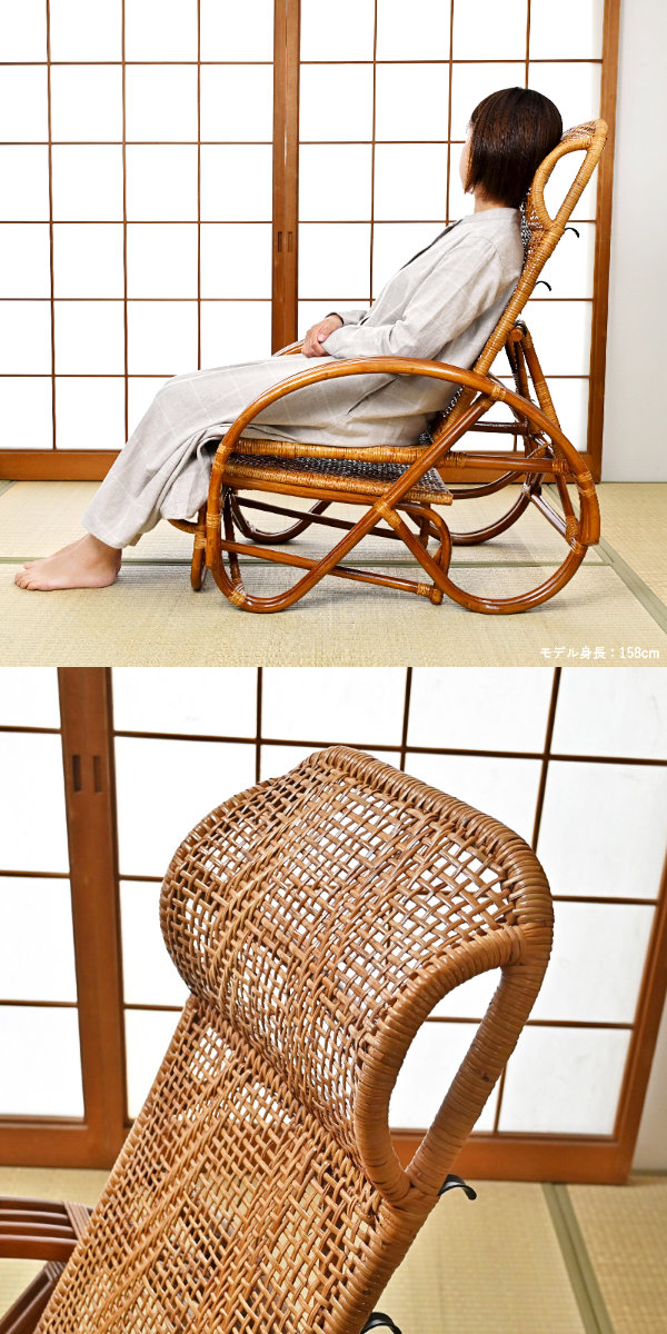 ラタン リクライニングチェア 3段階 座面高36cm フットレスト付き