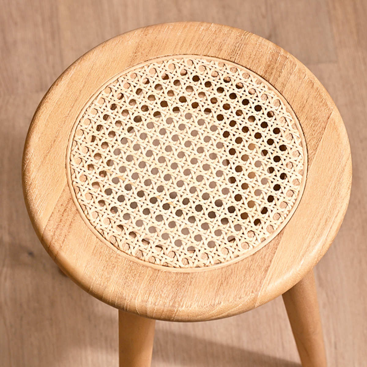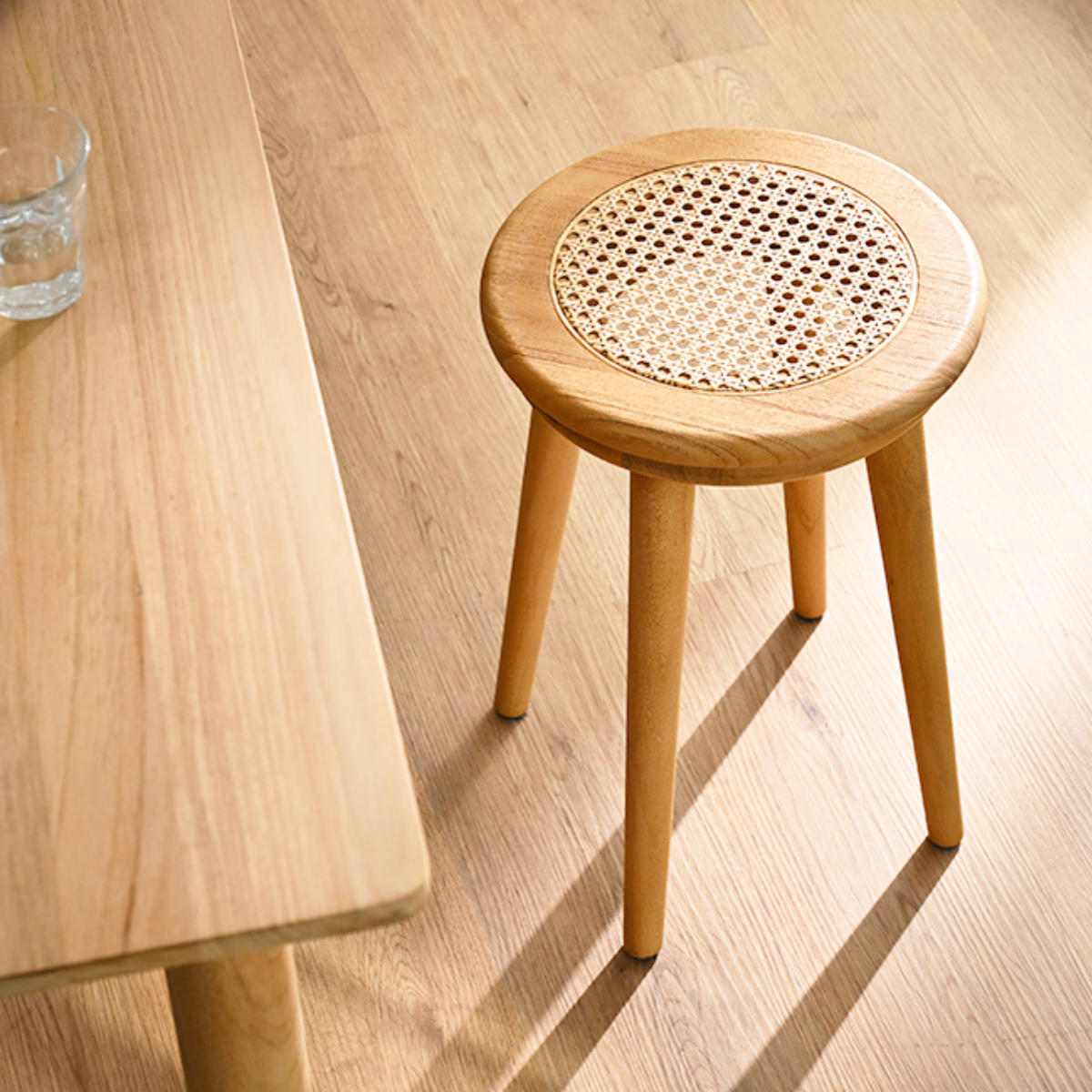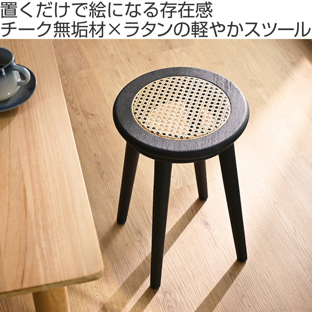 チーク無垢材×ラタンの軽やかなスツール