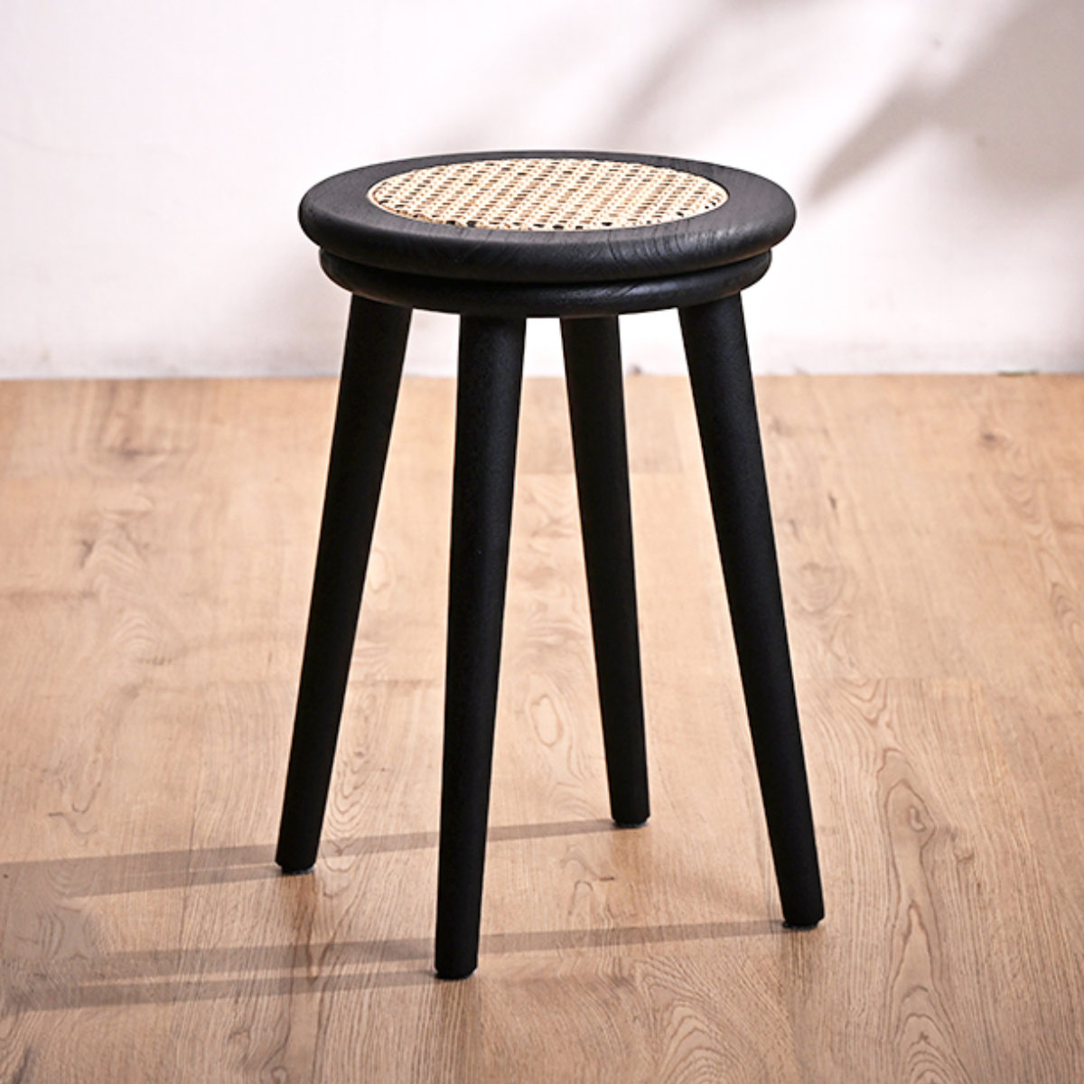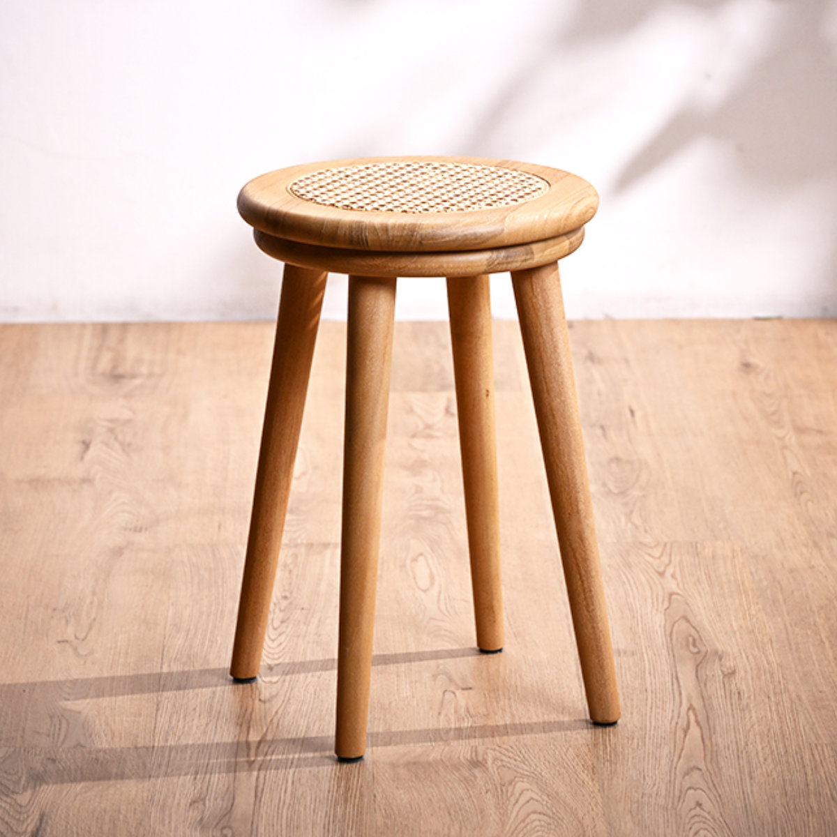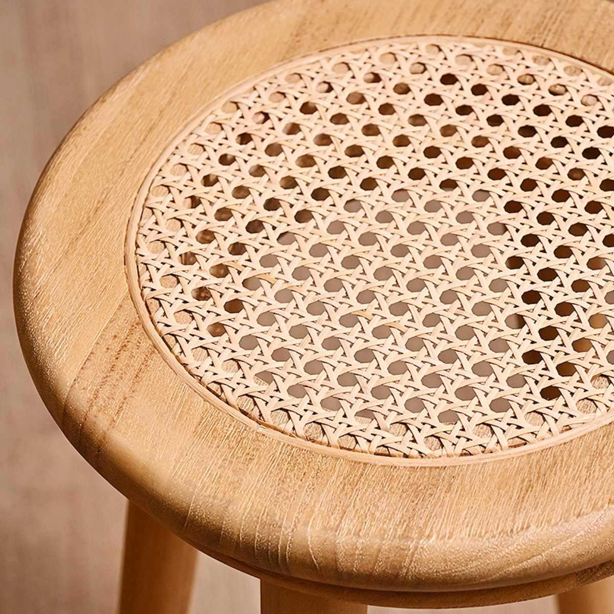 チーク無垢材×ラタンの軽やかなスツール