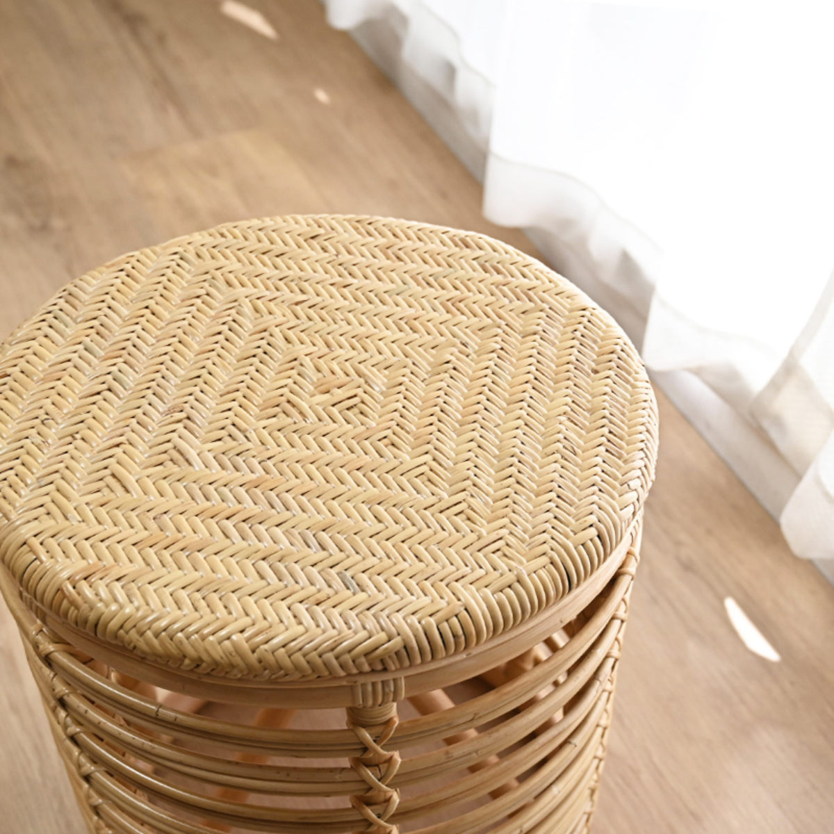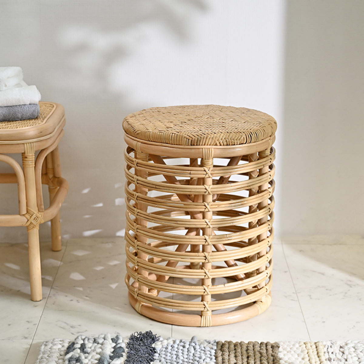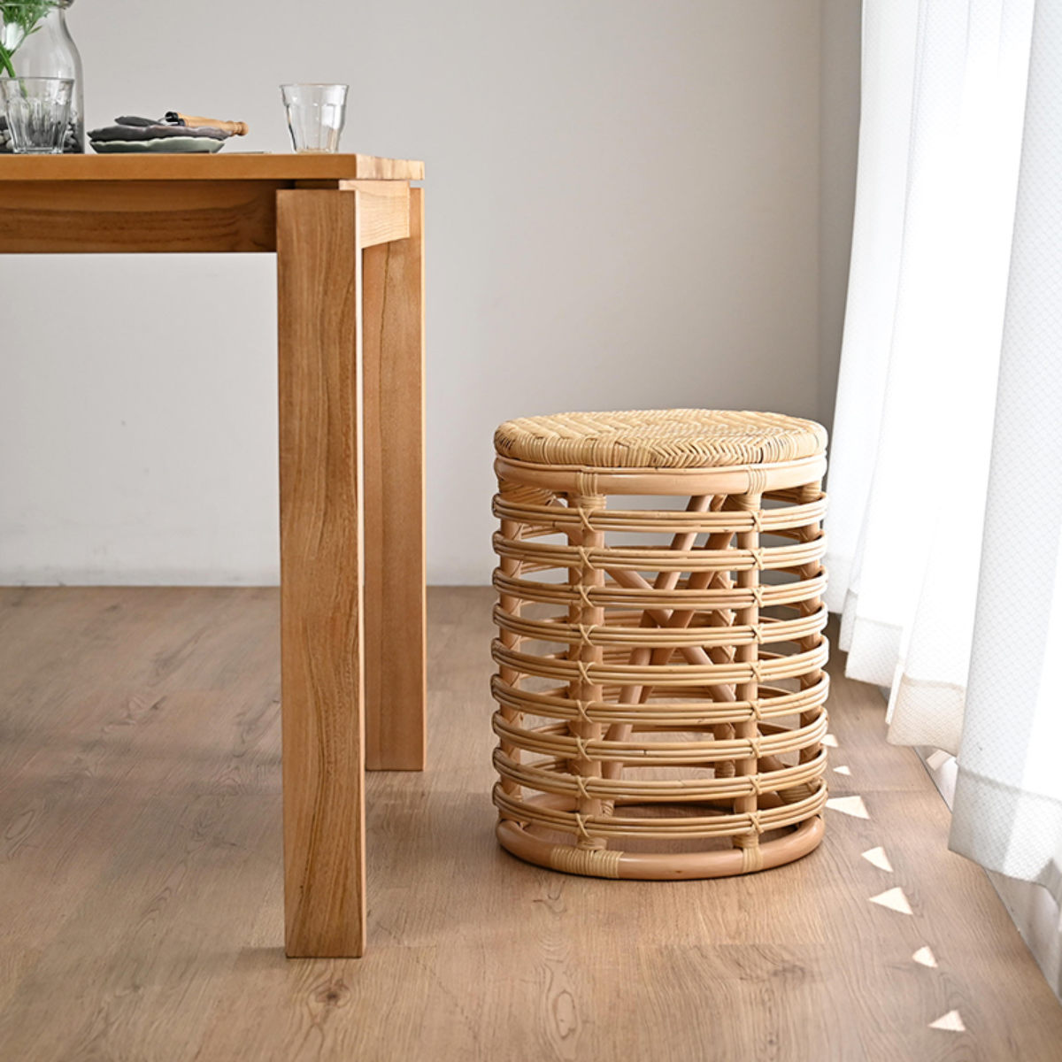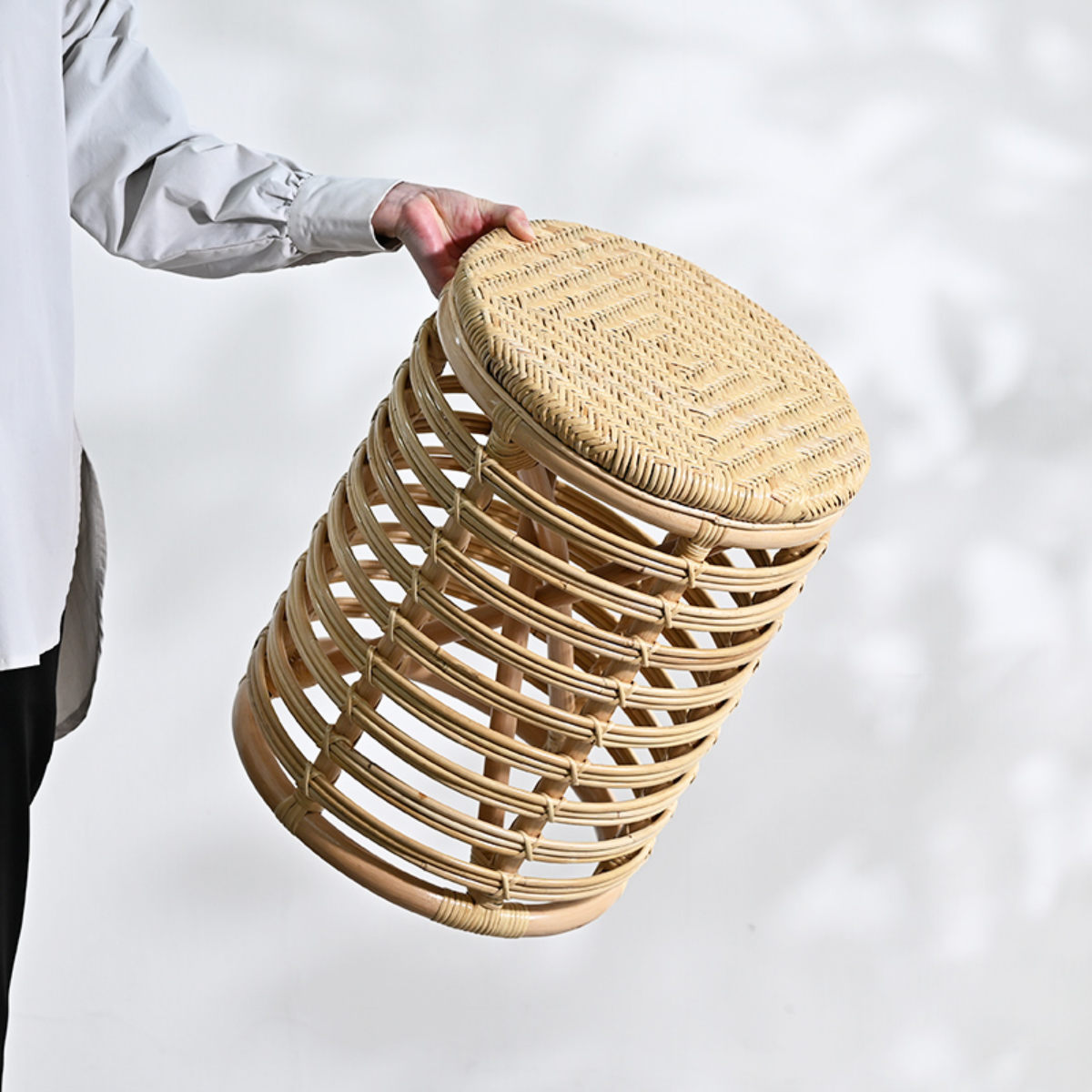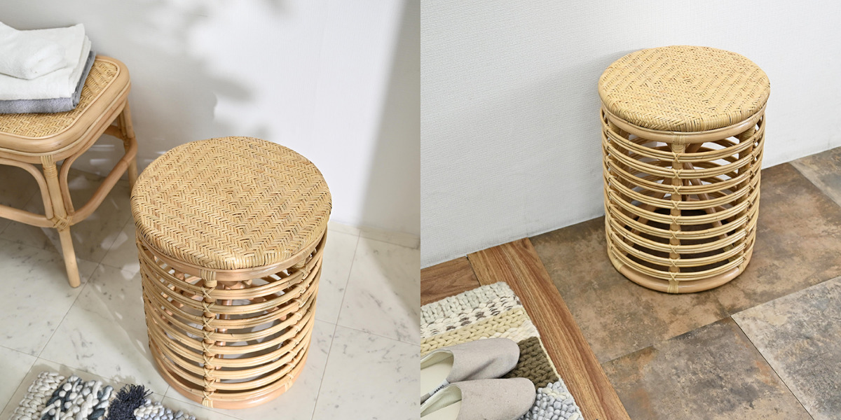 ラタンのしなやかな曲線と、すっきりとしたフォルムが魅力のスツールです。和室にも洋室にも自然に馴染み、長く使えるシンプルなデザインです。