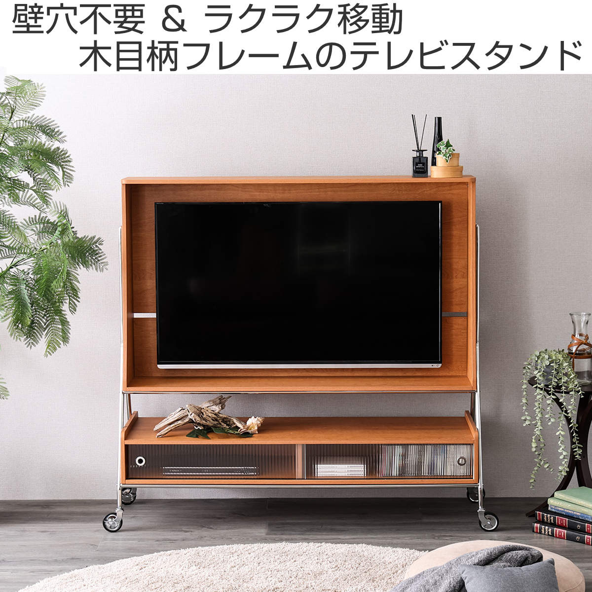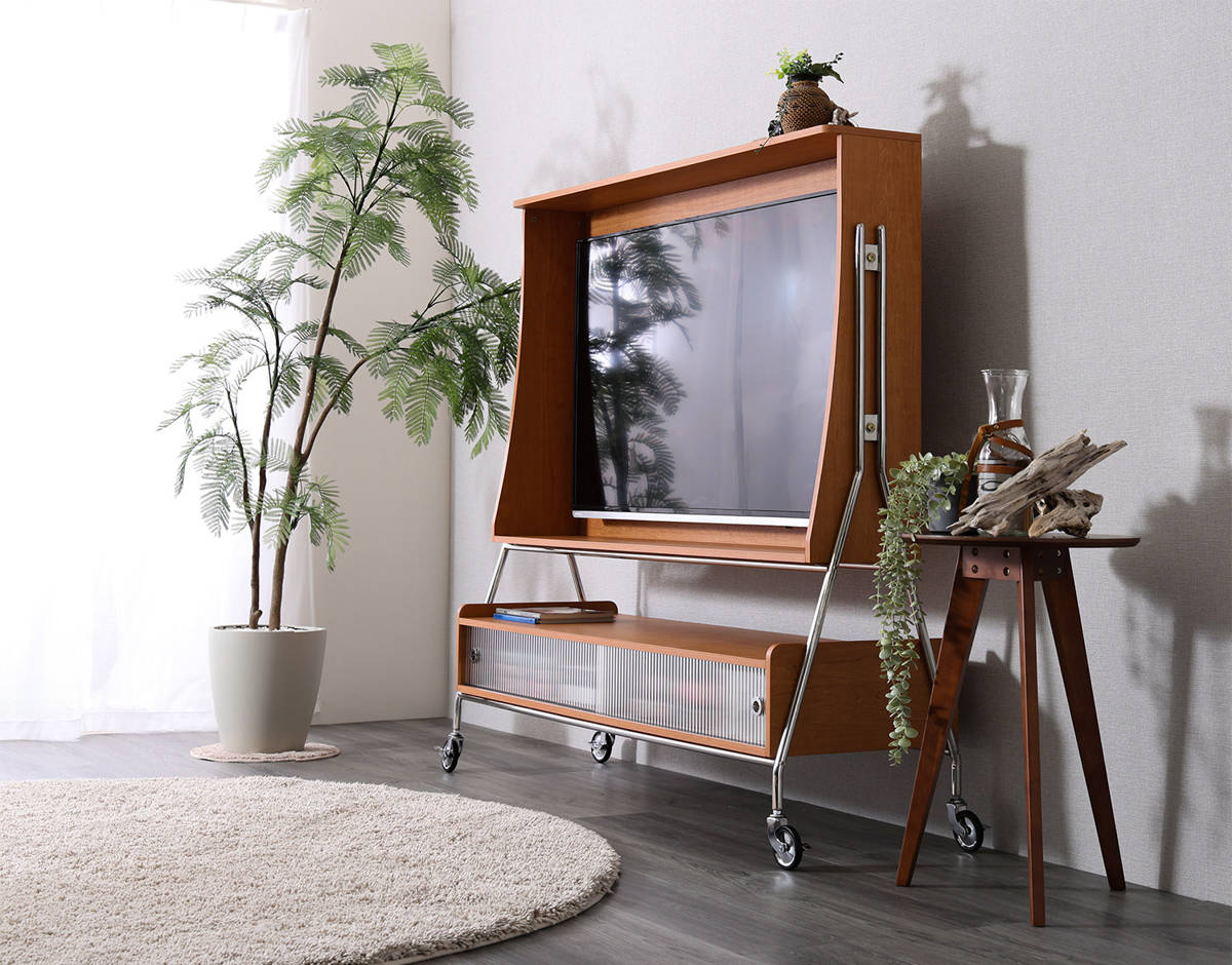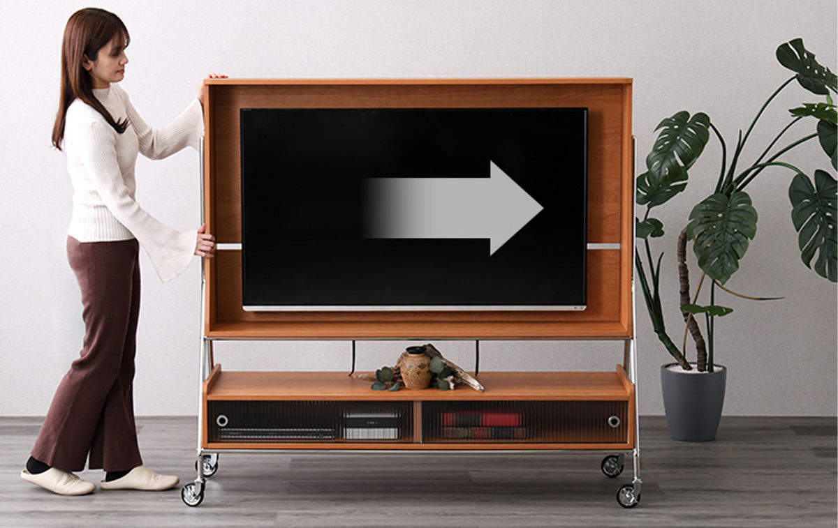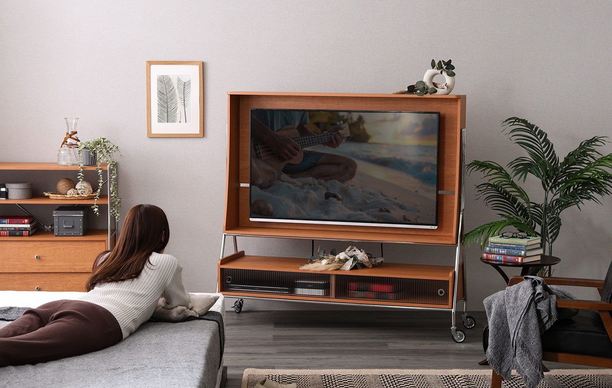 おしゃれに壁掛け風に取り付けられ、賃貸のご家庭でも手軽にお使いいただけます。また、キャスター付きなのでライフスタイルに合わせてテレビを好きな場所へ移動することも簡単です。
