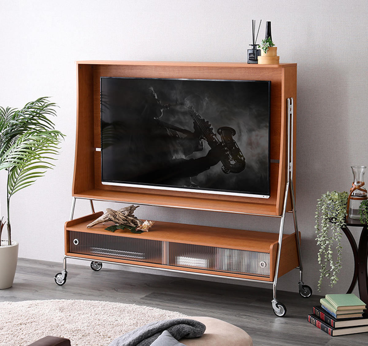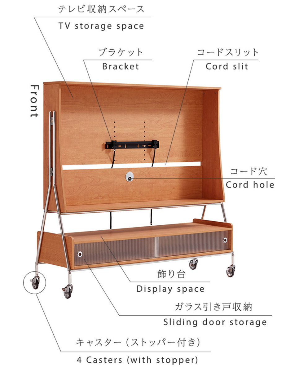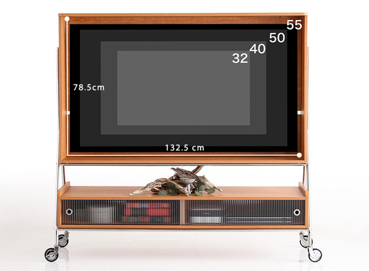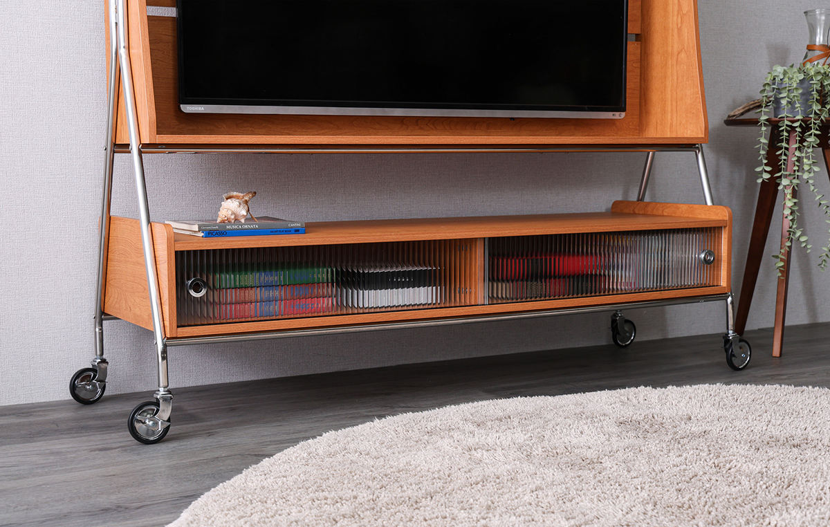 おしゃれに壁掛け風に取り付けられ、賃貸のご家庭でも手軽にお使いいただけます。また、キャスター付きなのでライフスタイルに合わせてテレビを好きな場所へ移動することも簡単です。