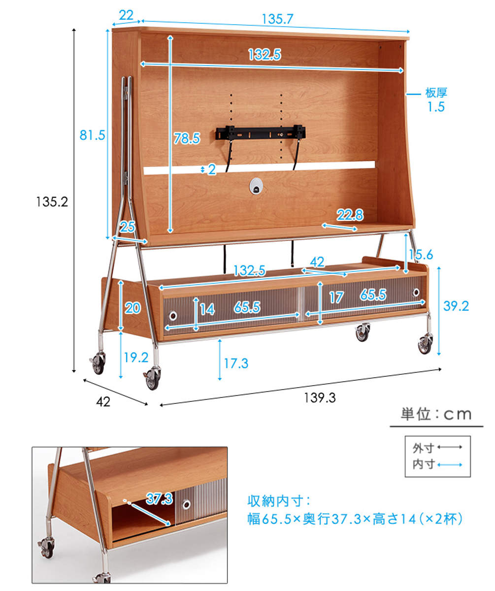 | サイズ | 約 幅139.3×奥行42×高さ135.2(cm) |