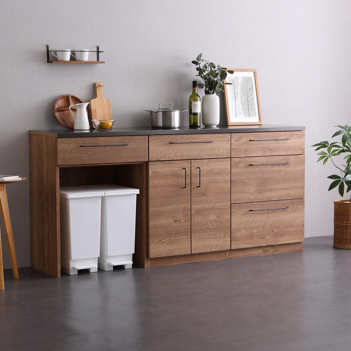 ゴミ箱上カウンター×扉収納×引出し収納棚 幅180cm