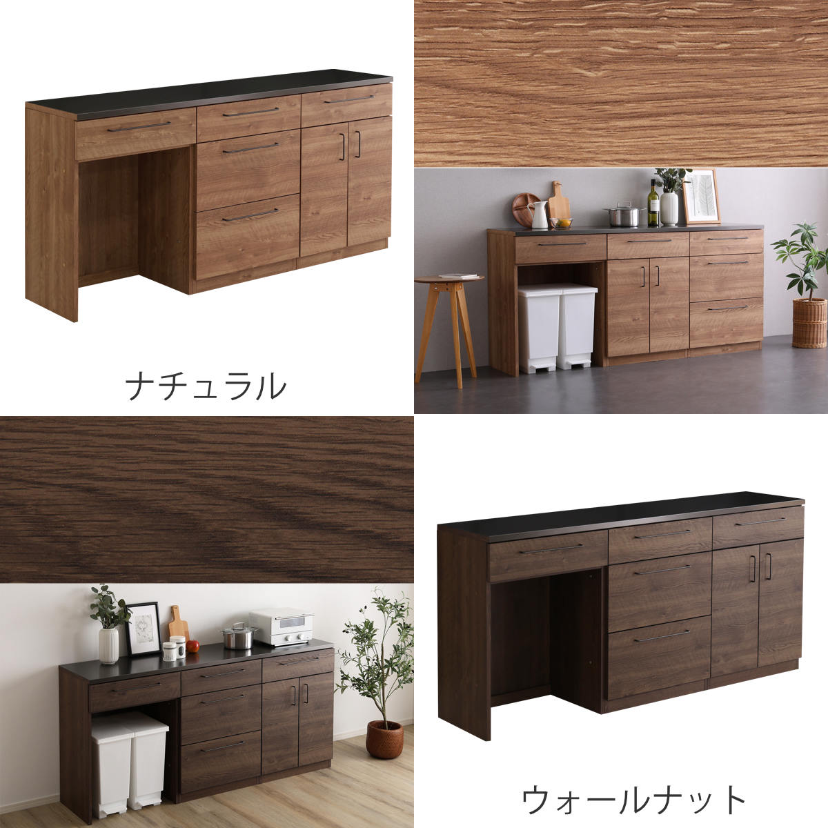 Lugoシリーズには4種類のキッチンカウンターを単品、2個セット、3個セットとして組み合わせた商品もございます。