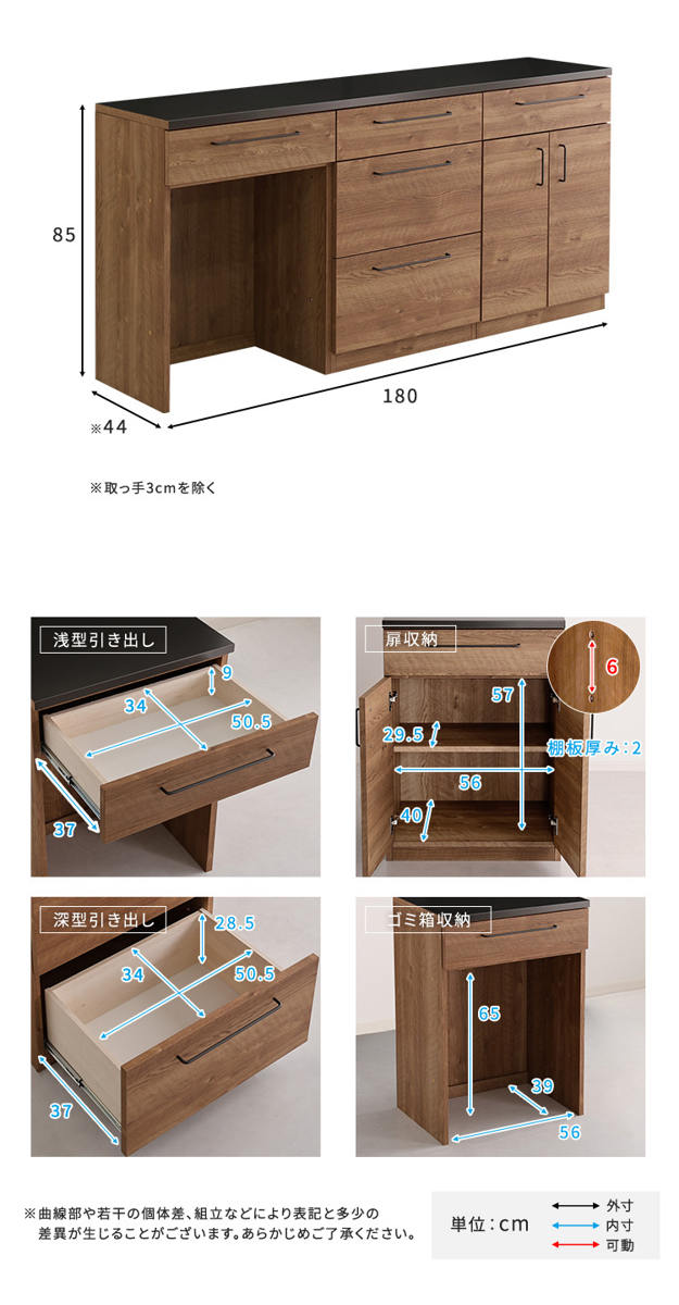 | 内容量 | 1台 (ゴミ箱上カウンター×1、引出し収納棚×1、扉収納棚×1、天板×1) |