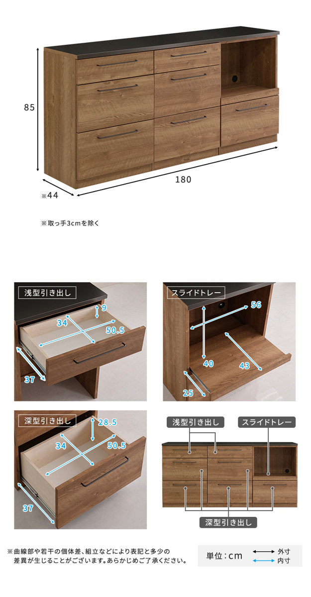| サイズ | 約 幅180×奥行44×高さ85(cm) |
