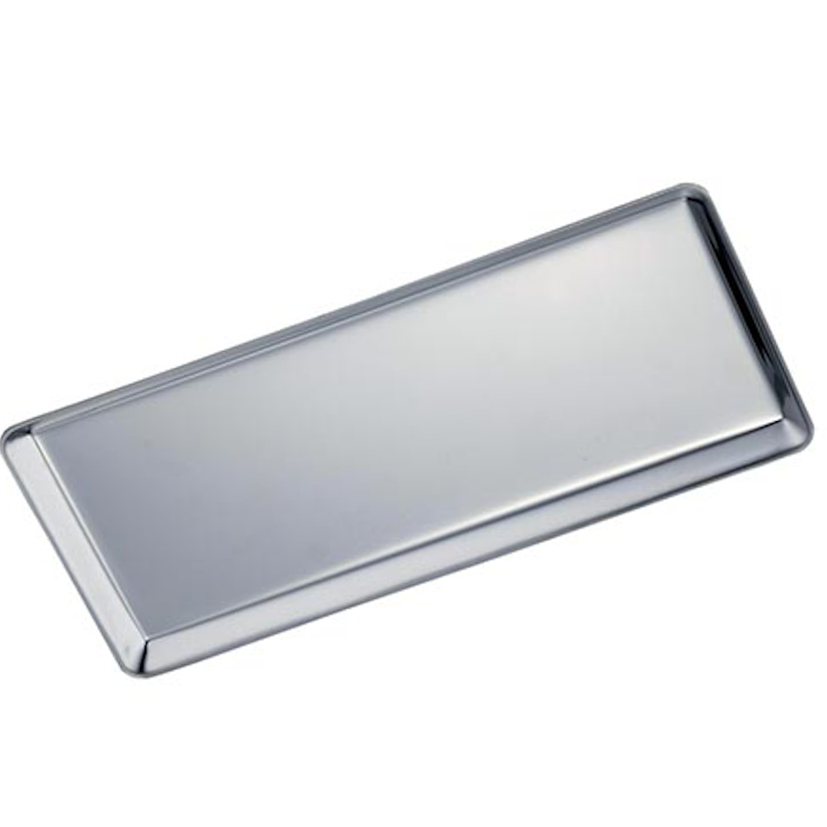 シャープで落ち着いた印象の角型トレーです。お札やカードを置きやすく、レジや受付での受け渡しをスマートにサポートします。シンプルなステンレス素材で清潔感のあるデザインです。