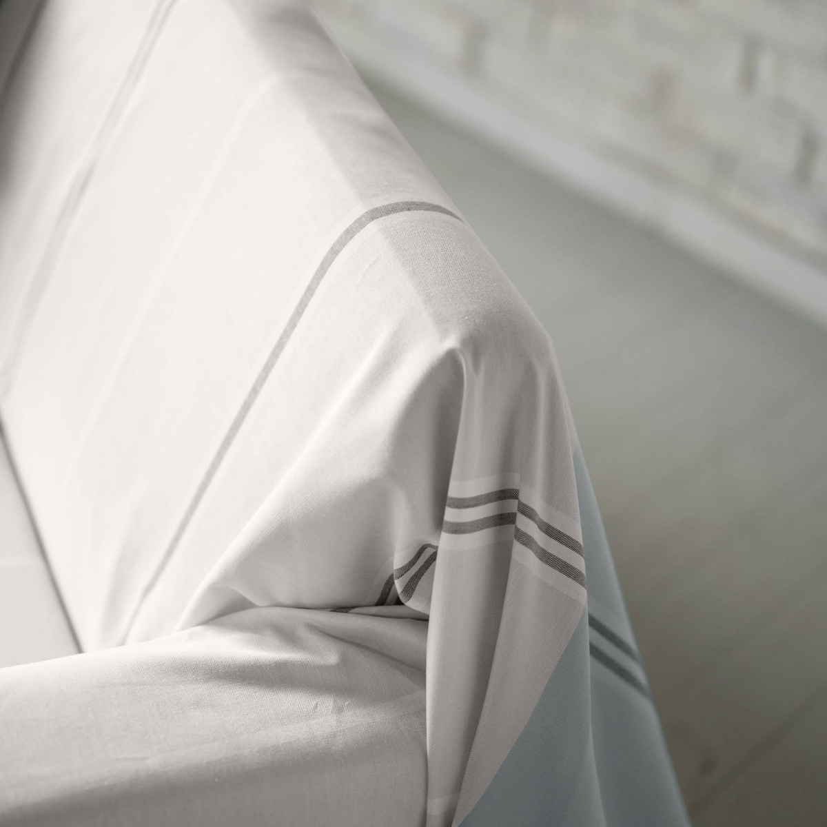 先染めの色糸を使用し、織りで表現した3段のブロックボーダーデザインのマルチカバーです。シンプルながら表情のあるデザインで、お部屋にやさしく溶け込み、ナチュラルで落ち着いたグレーカラーが、空間に爽やかな印象を与えます。