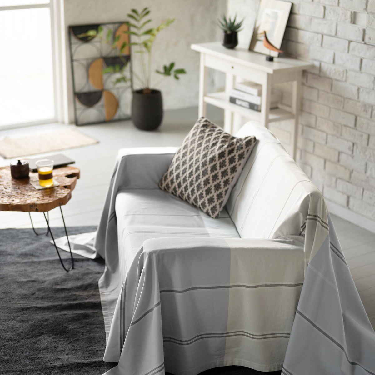 シンプルで使いやすいデザインなので、ソファカバーとしてはもちろん、ベッドカバーやベッドスプレッドなどさまざまな用途でお使いいただけます。掛けるだけでお部屋の印象を手軽に変えることができ、シーンやインテリアに合わせて自由に楽しめるマルチカバーです。