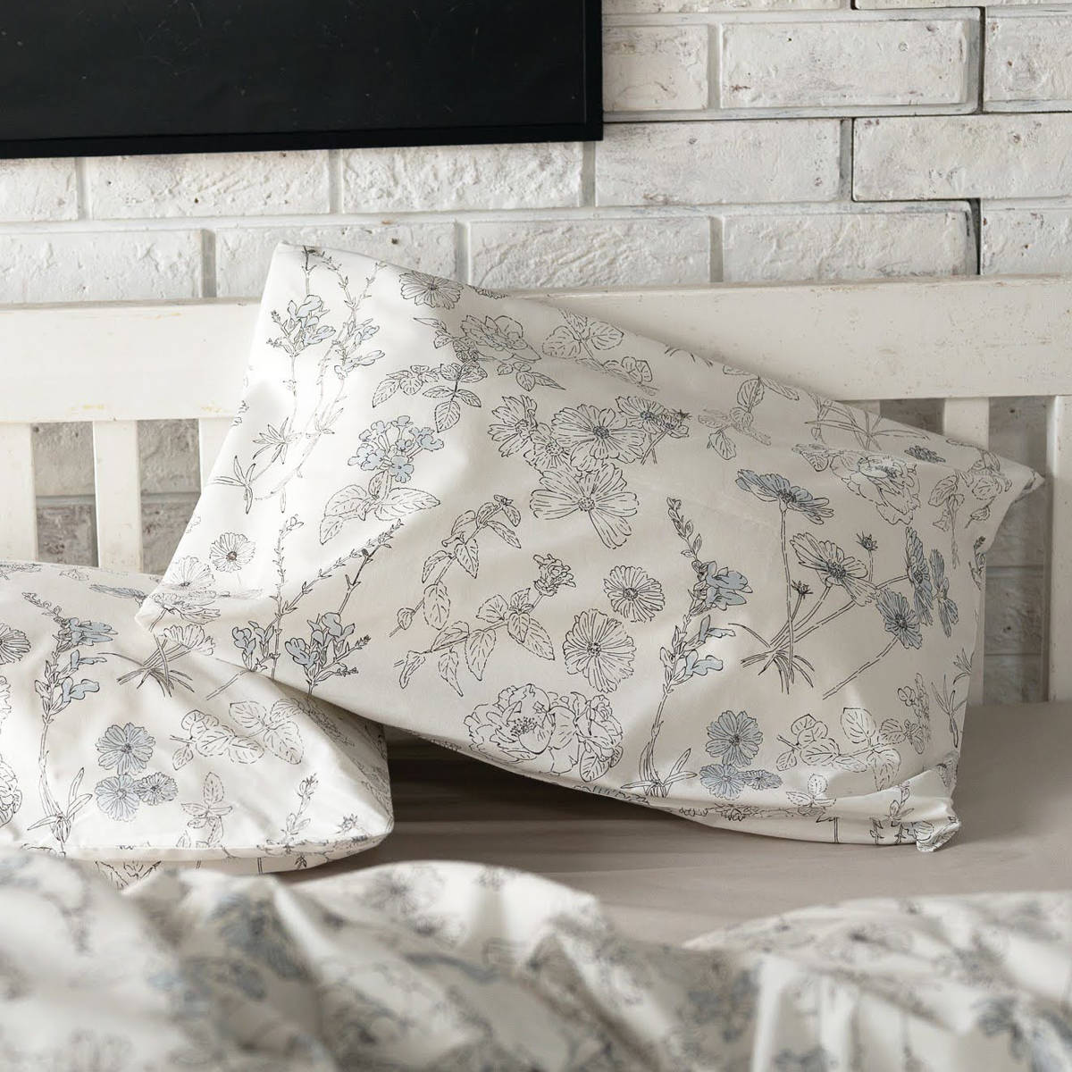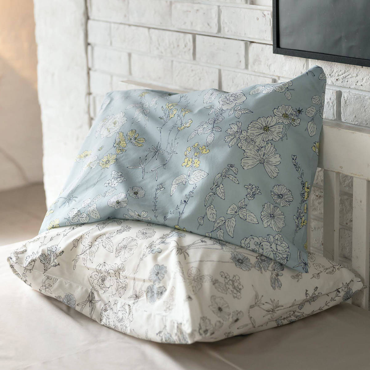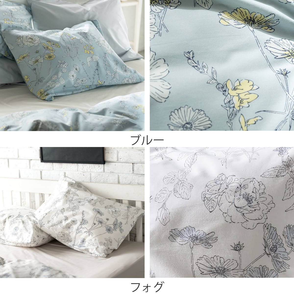 四季折々に咲く美しい花々を、細やかなラインで描いた植物画のようなデザインの枕カバーです。花びらにふんわりと色をのせたシックなデザインが寝室を優しく彩り、毎日の眠りの時間を心地よく演出します。