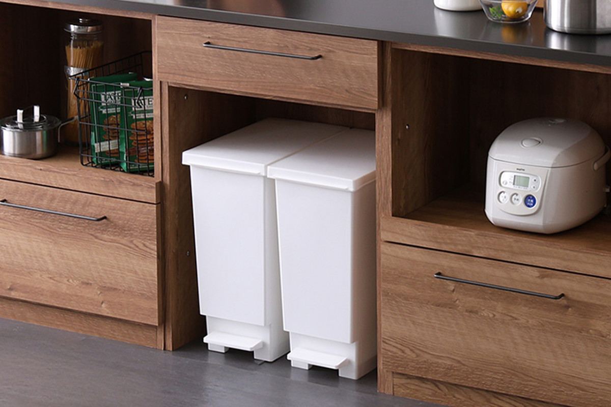 カウンター下にゴミ箱を収納できるため、キッチンをすっきりと見せることができます。デッドスペースになりがちなゴミ箱上を、収納や作業スペースとして有効活用できるので便利です。