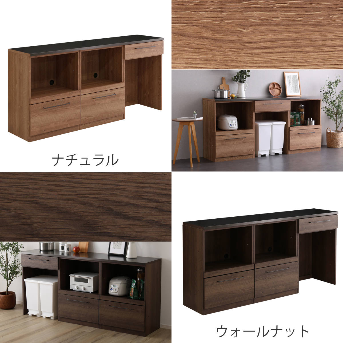 Lugoシリーズには4種類のキッチンカウンターを単品、2個セット、3個セットとして組み合わせた商品もございます。