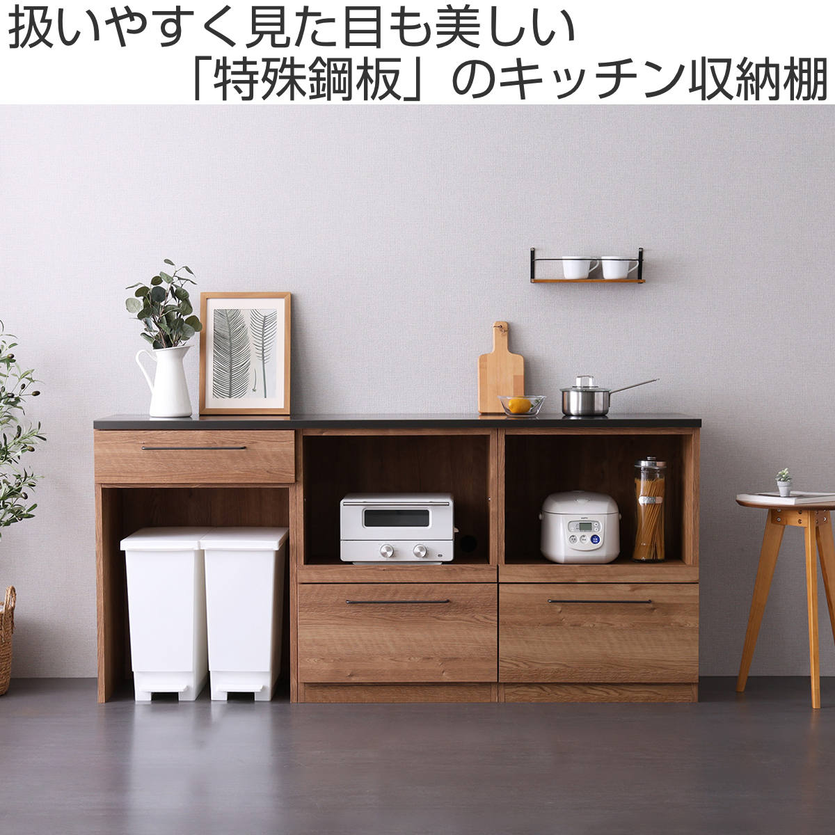 | 材質 | 天板:特殊鋼板 本体:プリント紙化粧繊維板 取っ手:スチール |