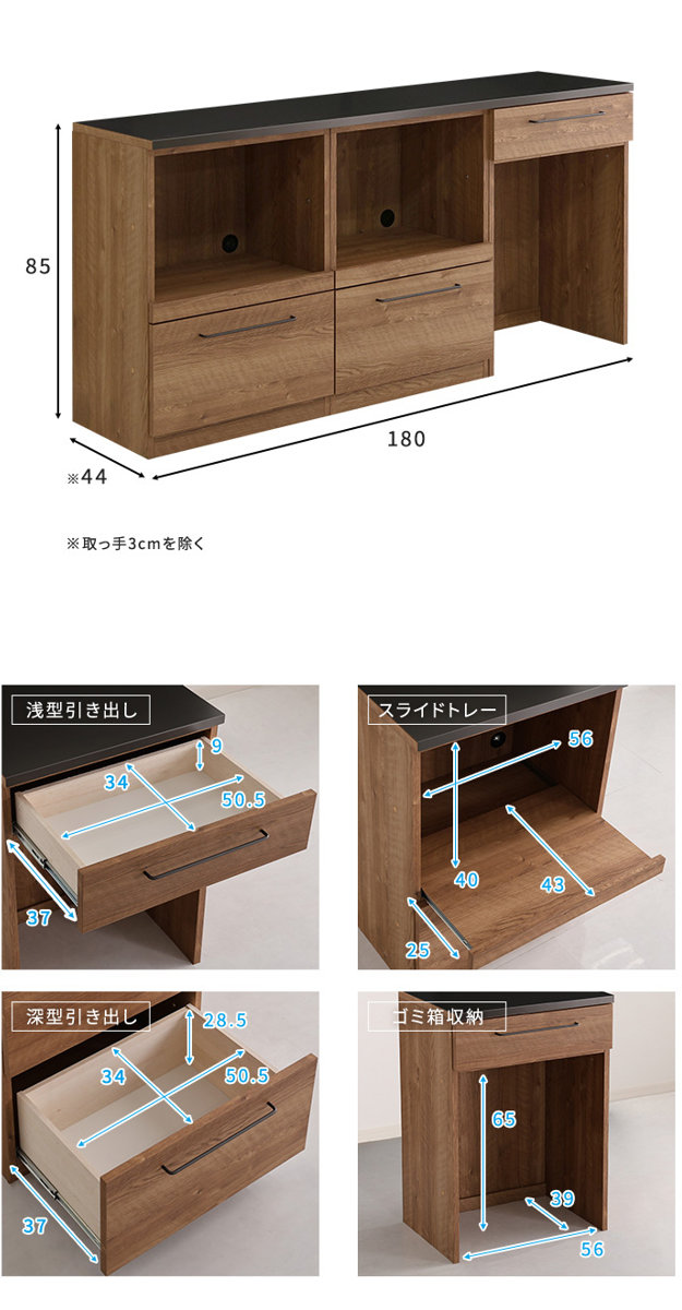 | サイズ | 約 幅180×奥行44×高さ85(cm) |