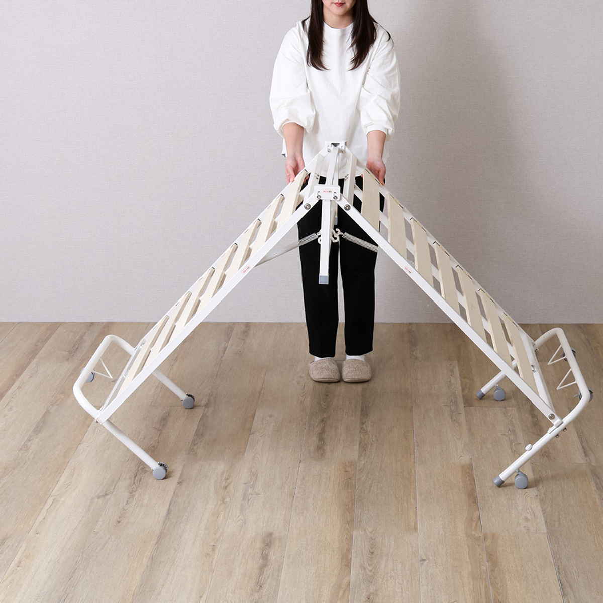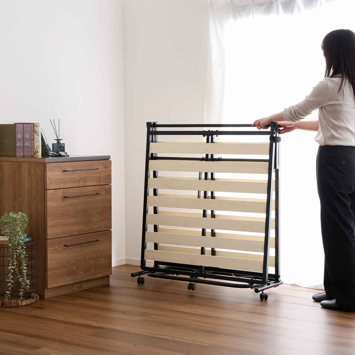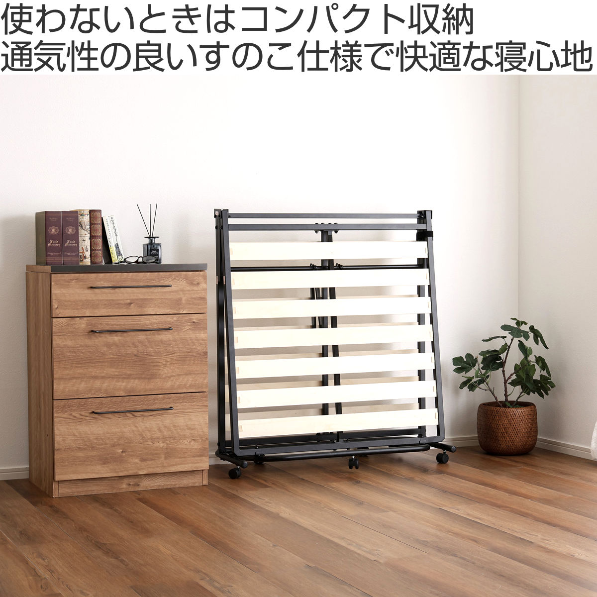 使わないときは折りたたんで収納、快適すのこベッド