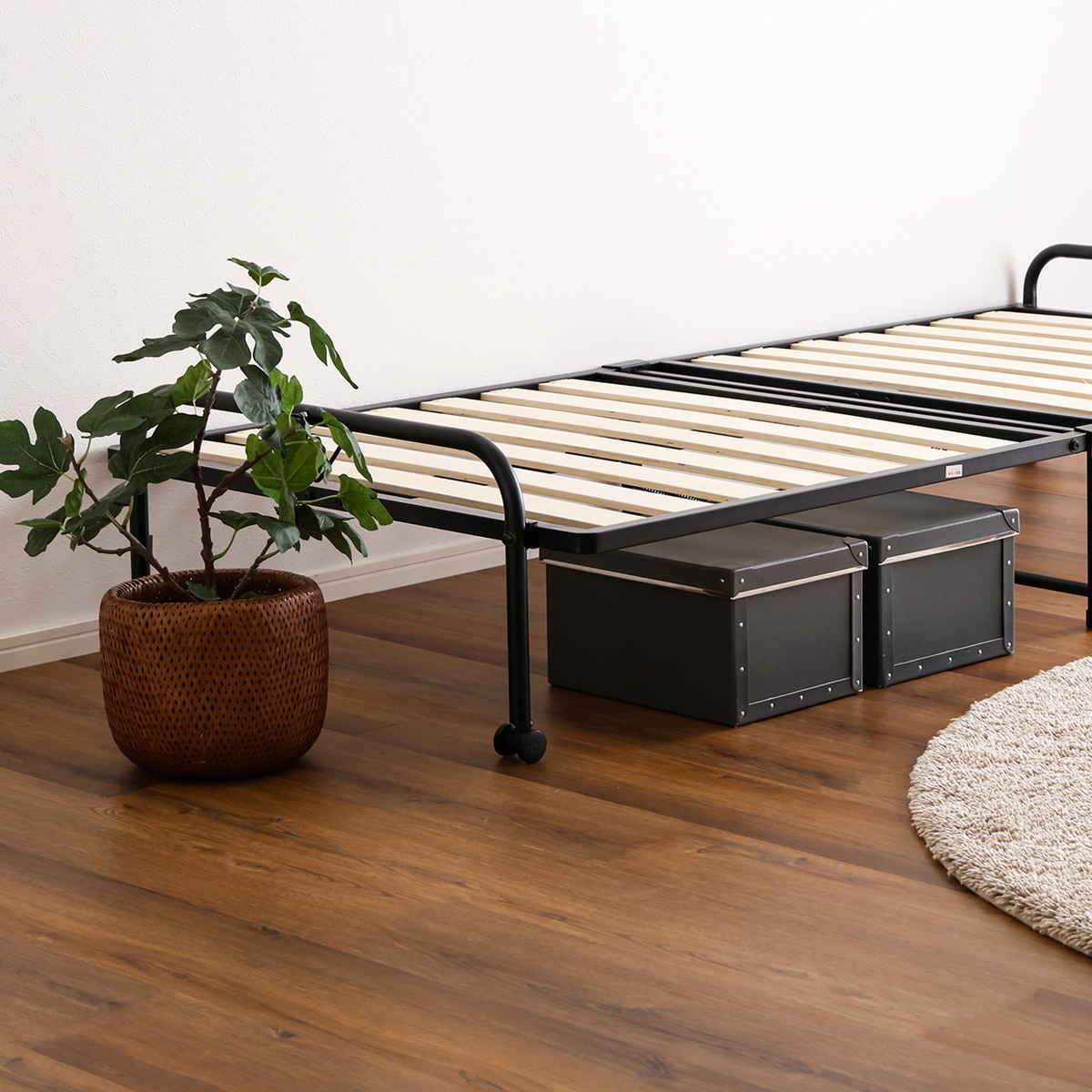 床板にはすのこを使用しています。空気が通りやすく、湿気がこもりにくいため、マットレスや敷き布団を清潔に保ちやすい設計です。オールシーズン快適にお使いいただけます。
