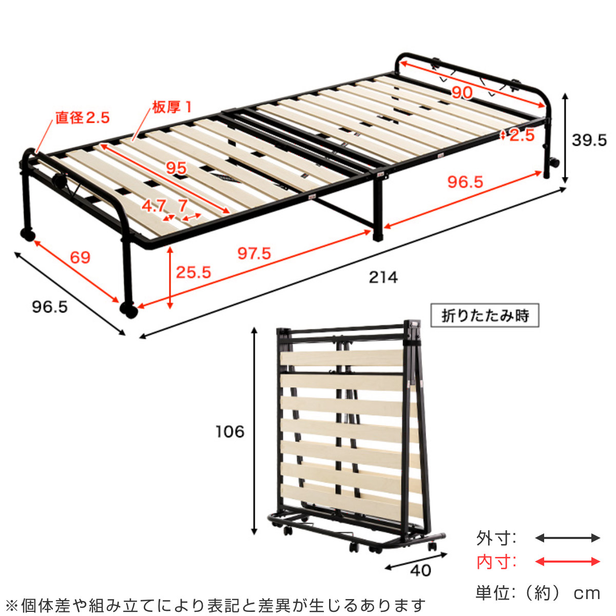 折りたたみ パイプすのこベッド シングル