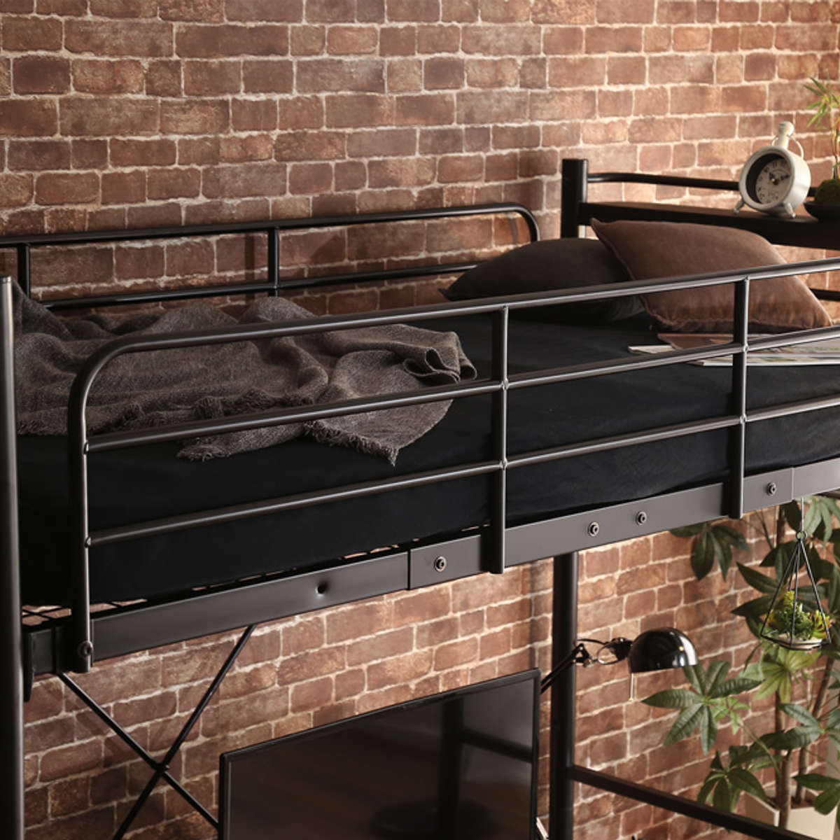 ベッド側面には、寝返り時の落下を防ぐ寝返りストッパーが付いています。睡眠中の体の動きをしっかりガードし、高さのあるロフトベッドでも安心してお休みいただけます。