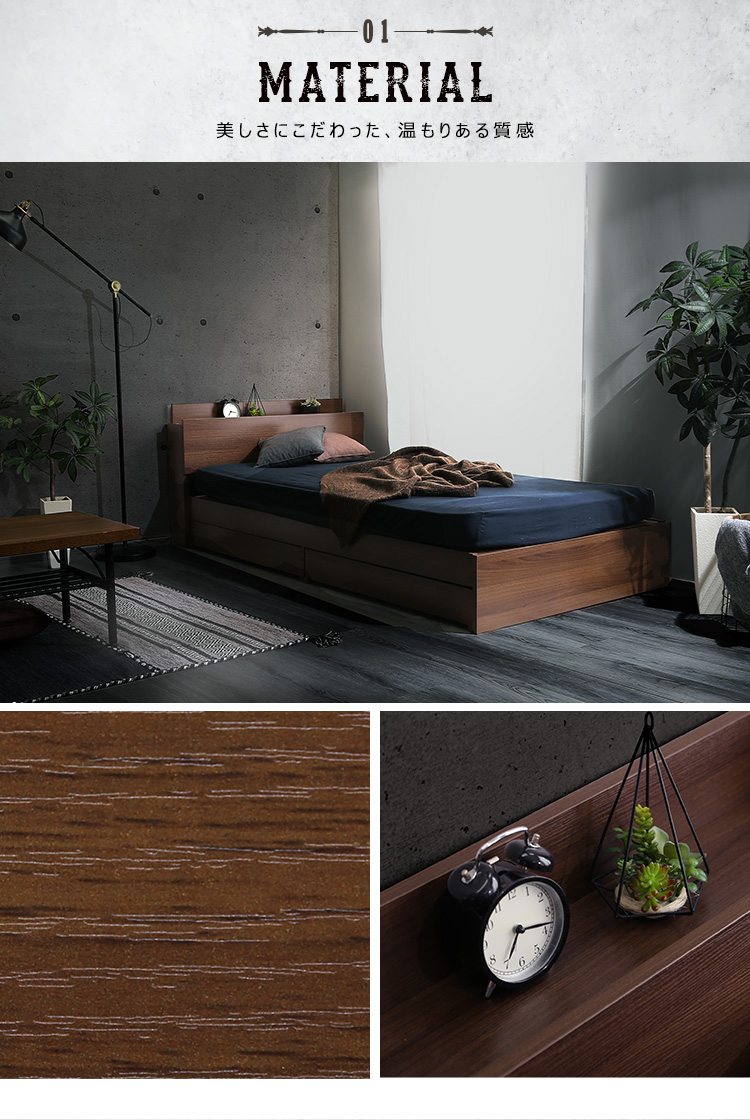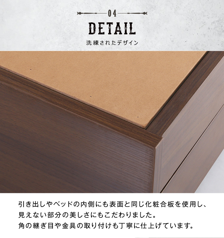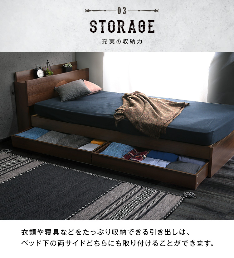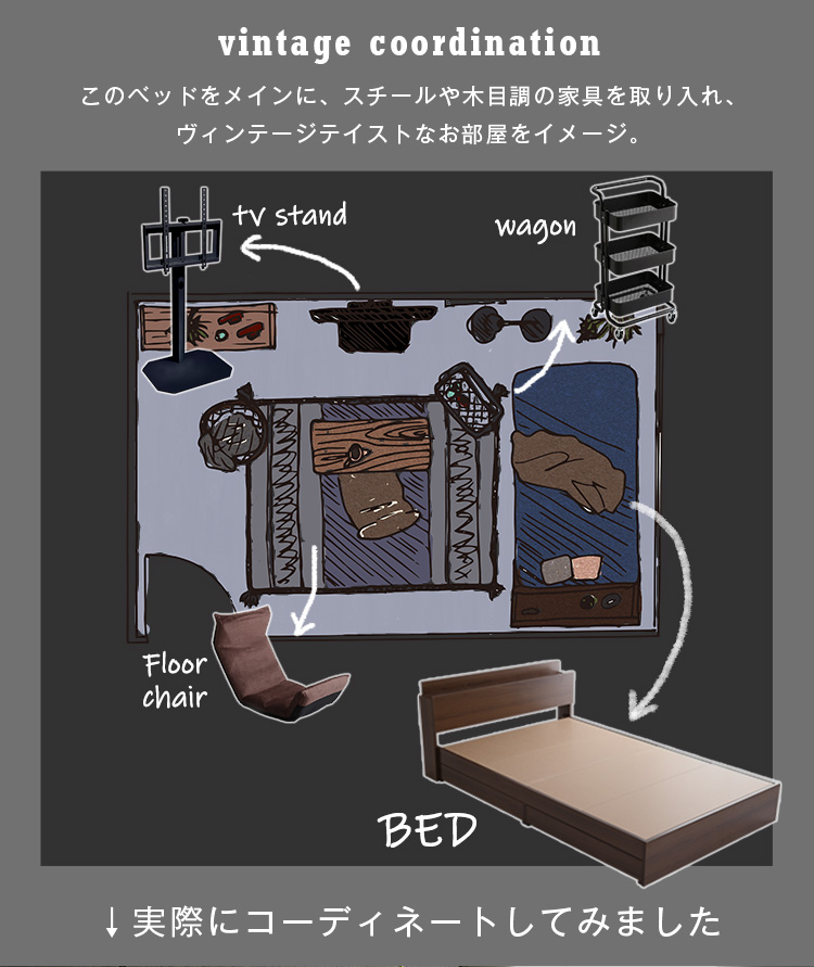 チェストベッド ダブル 宮棚 2口コンセント付 ヴィンテージ調