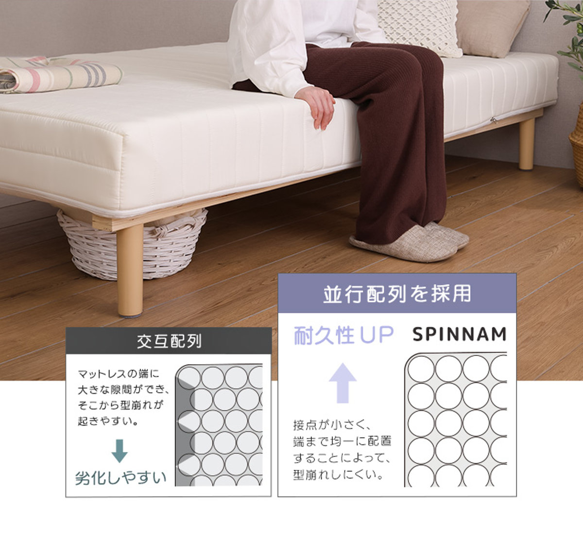 体圧分散性と耐久性に優れた並行配列