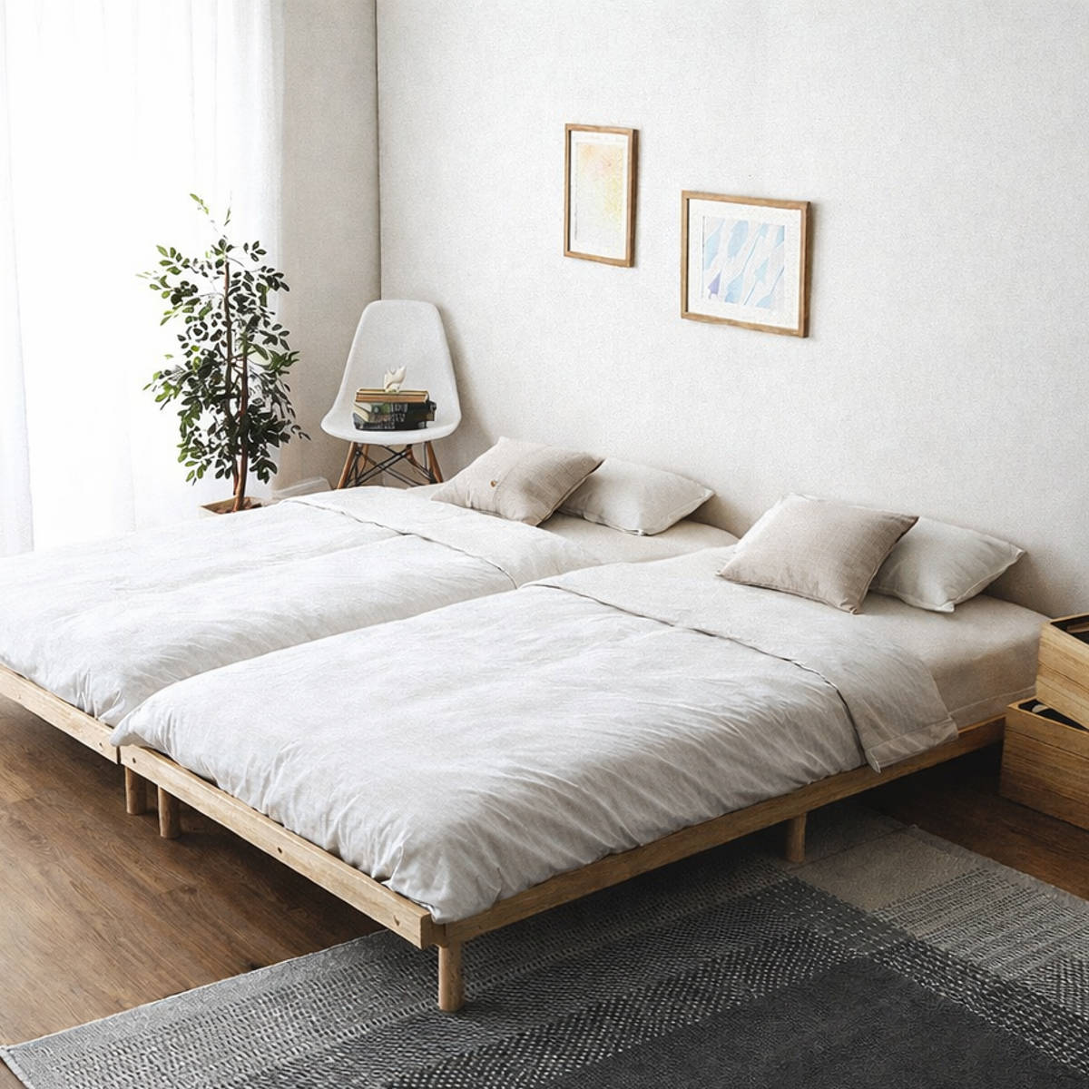 ベッドを並べられるシンプル設計で、ご家族でも広々とお使いいただけます。ライフステージの変化にも柔軟に対応できます。