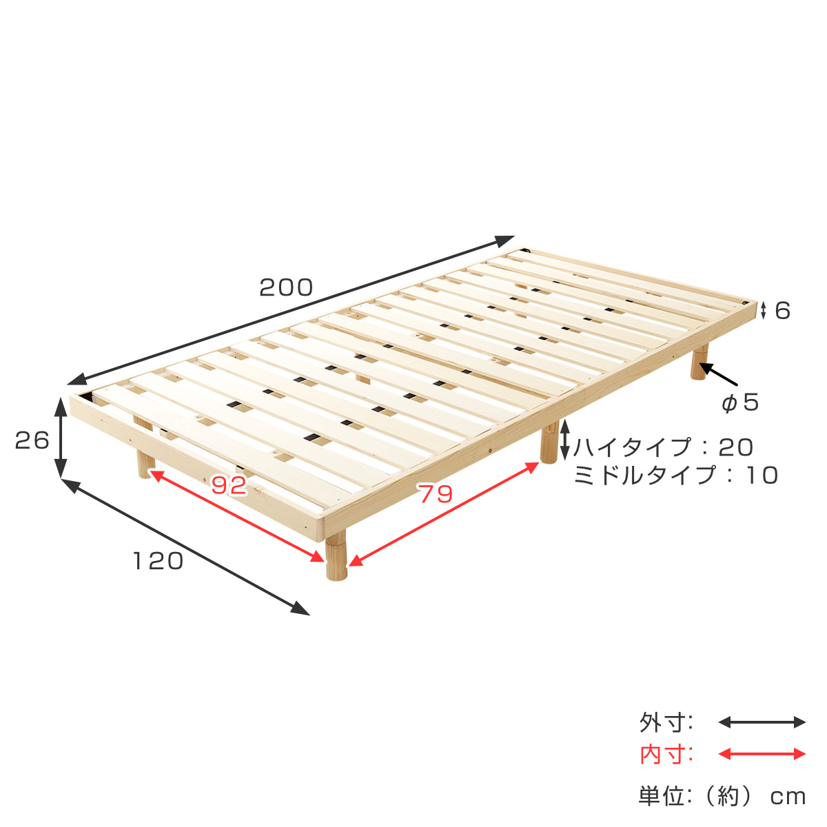 | 材質 | フレーム:天然木(パイン材) すのこ:積層合板(LVL) |