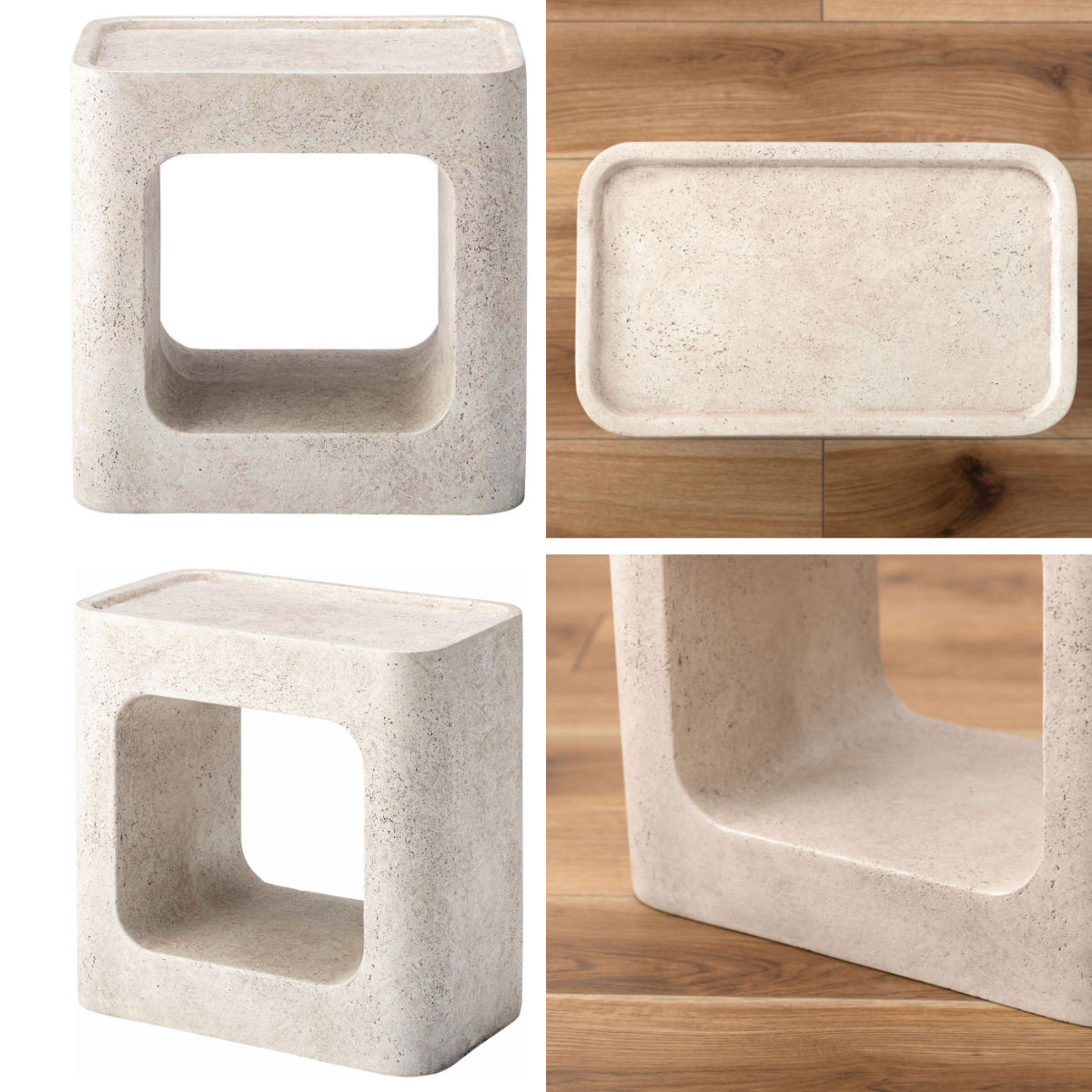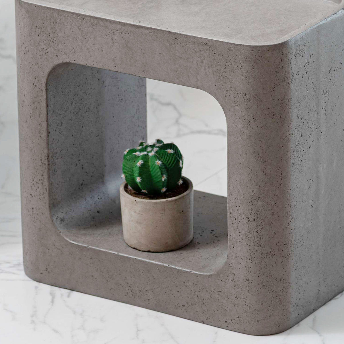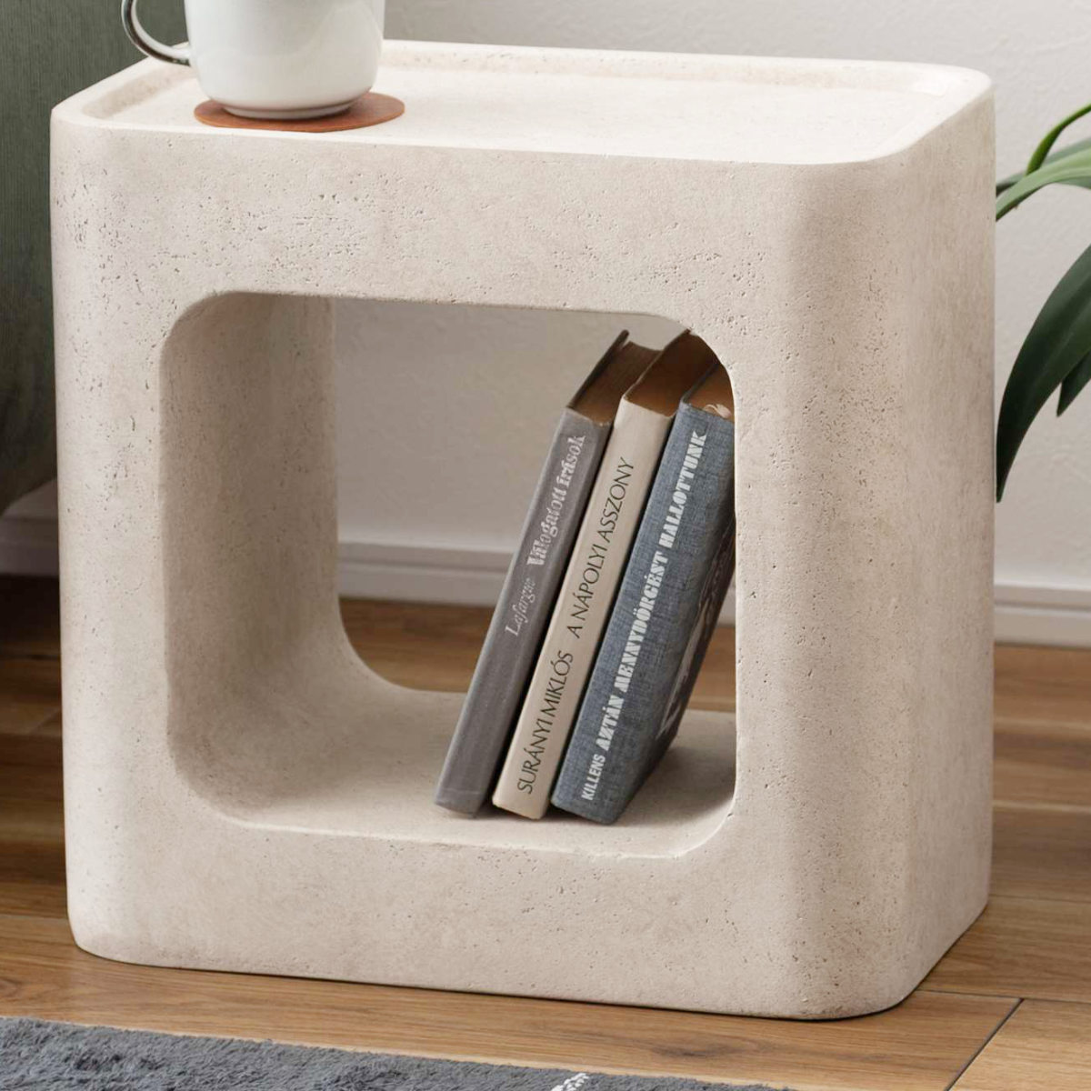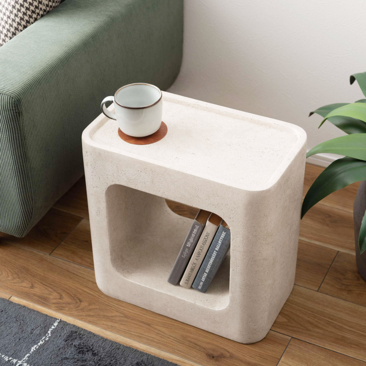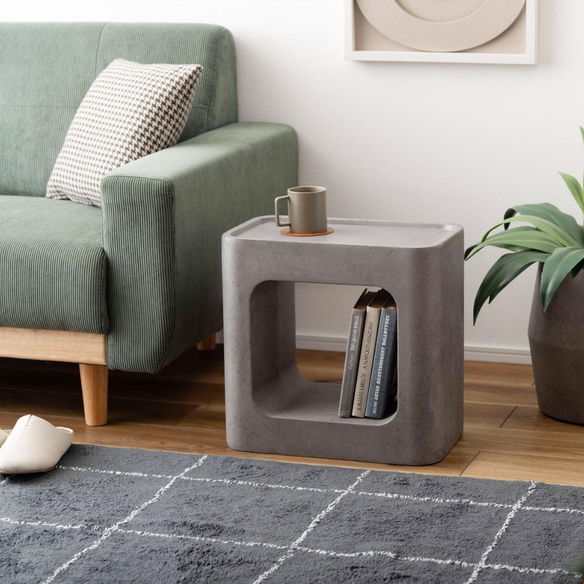 中央が空洞になったデザインで、ちょっとした収納スペースとしても活躍。小物や雑誌をすっきり収めることができ、見せる収納としても楽しめます。