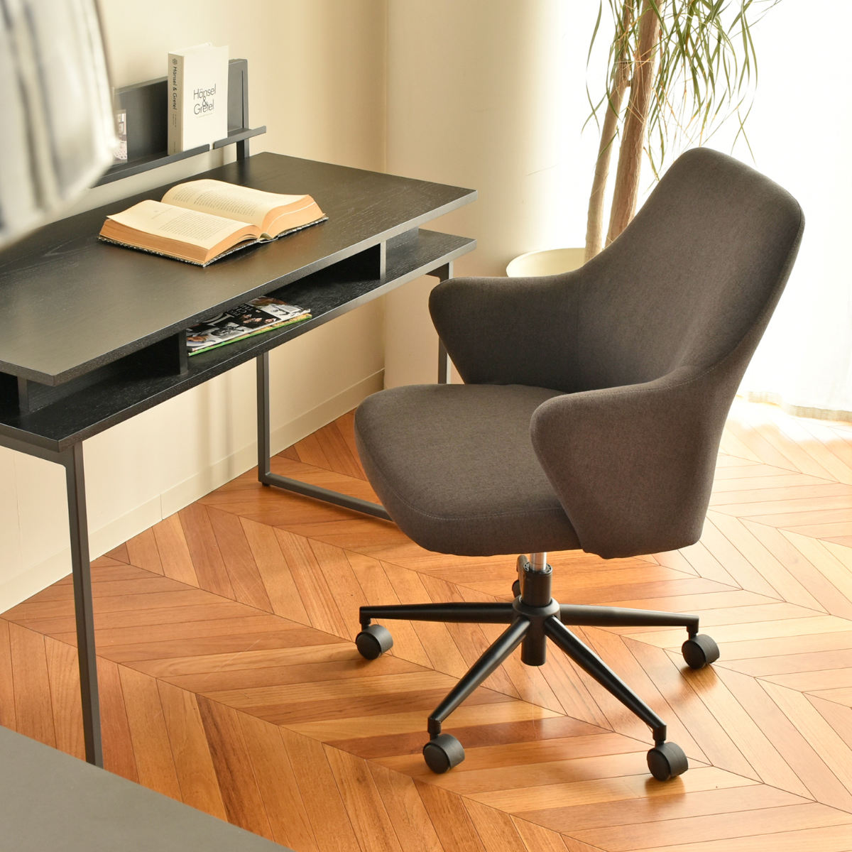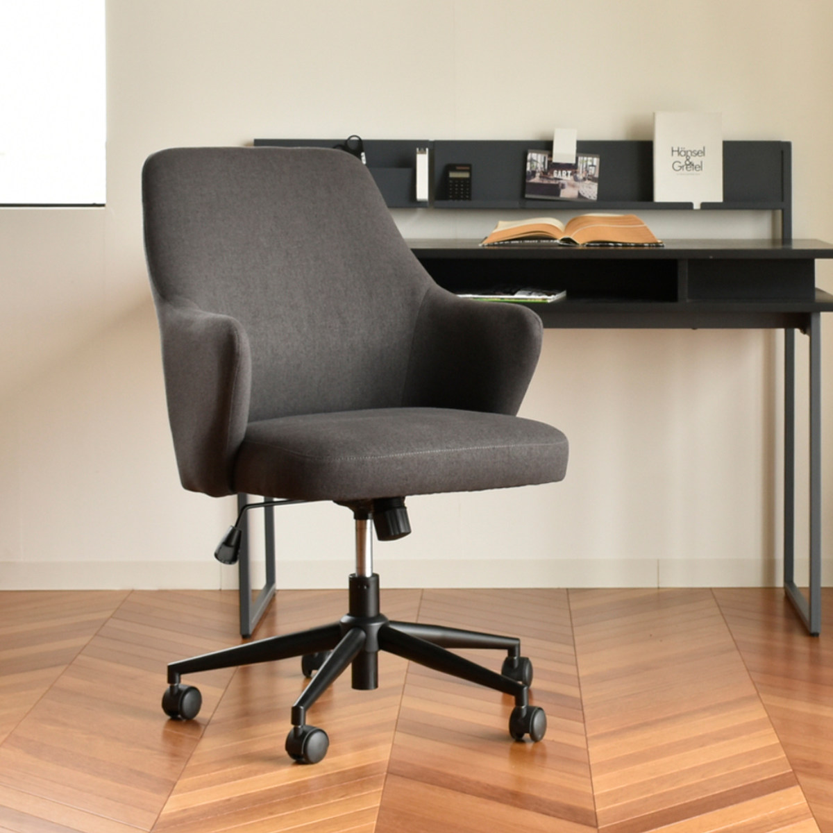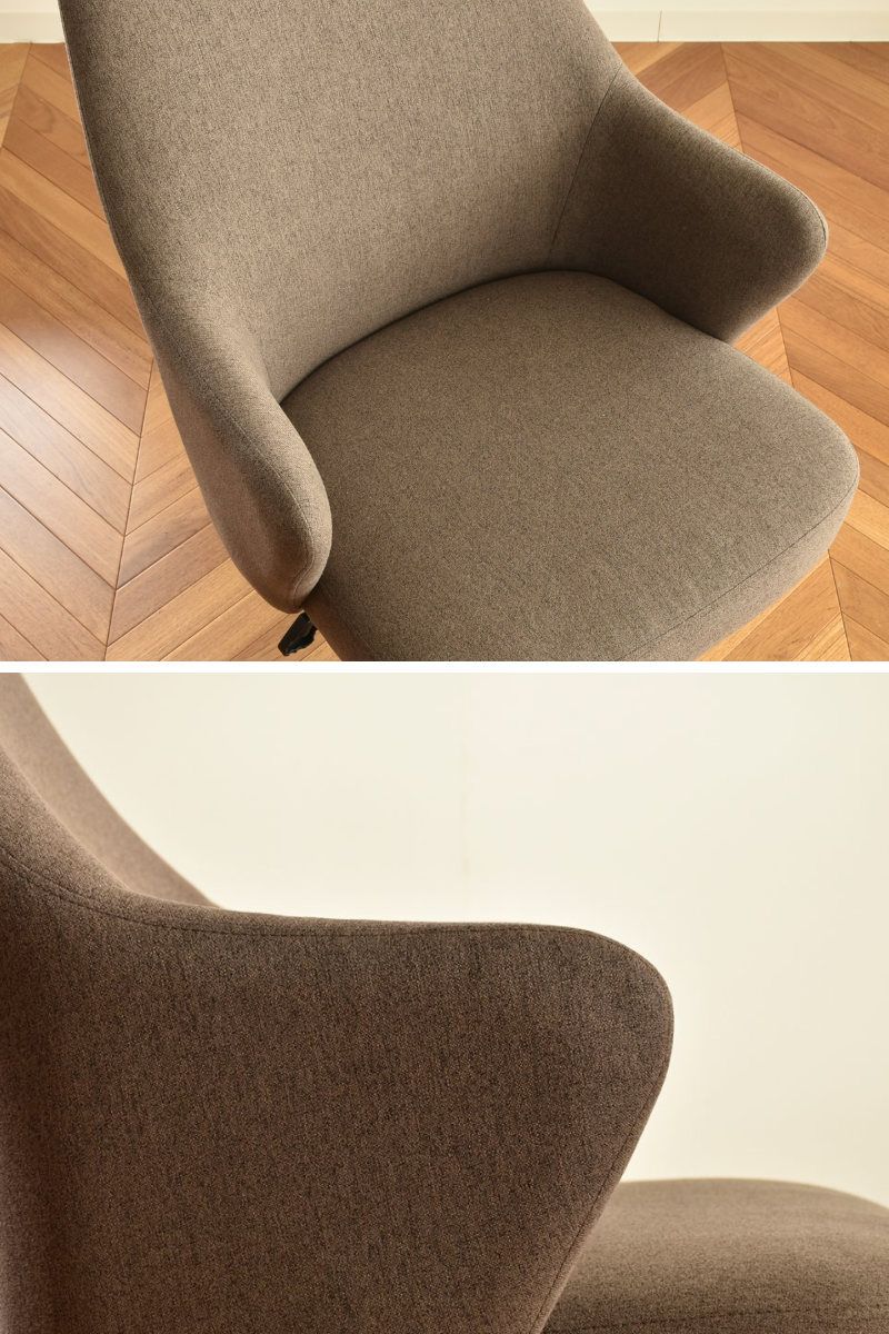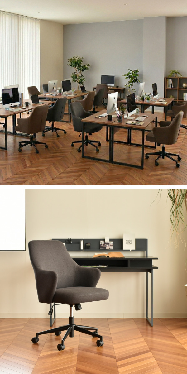 落ち着いたカラーとシンプルなフォルムで、ワークスペースを心地よく整えるチェア。統一感のあるオフィスづくりにもおすすめです。