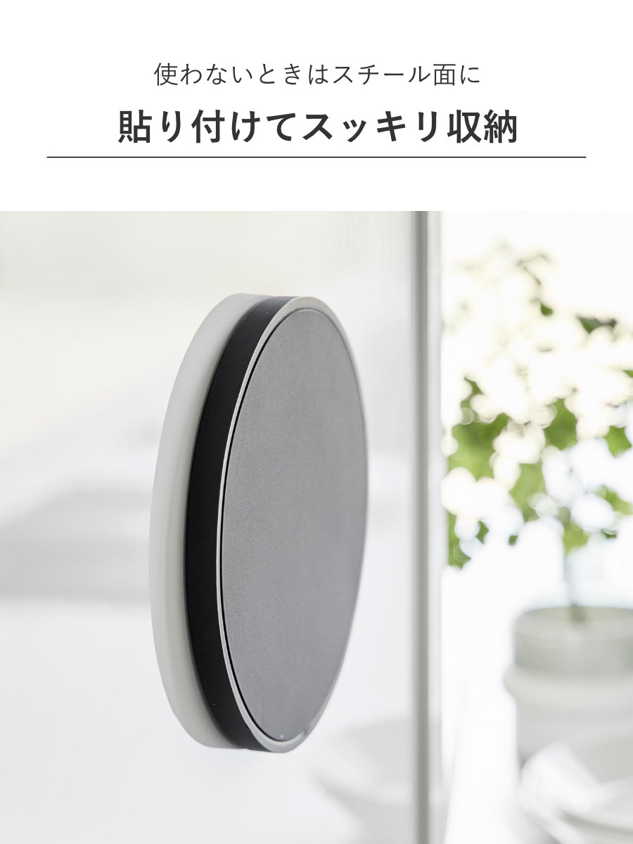 マグネットを内蔵しているため、使わないときは冷蔵庫やレンジフード、キッチンパネルなどのスチール面に貼り付けて収納できます。引き出しの中にしまう必要がなく、サッと手に取れる場所にすっきりと保管できるので、キッチン周りをスマートに整えられます。