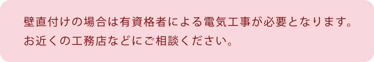 | 注意事項 | ※壁直付けの場合は有資格者による電気工事が必要となります。 |