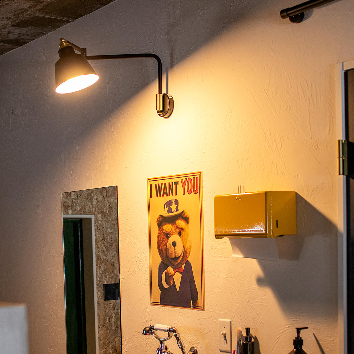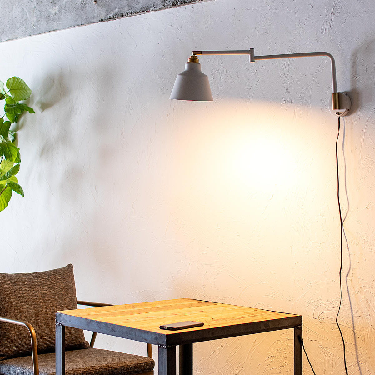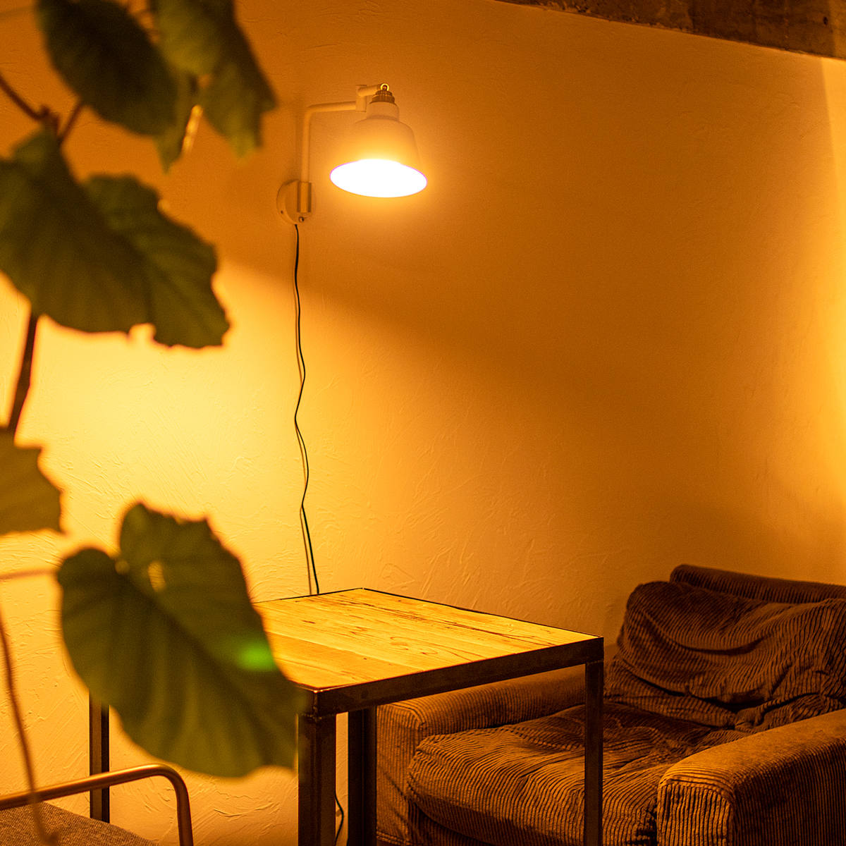 テーブル上に灯りが欲しい時、テーブルライトを置くとスペースを占領してしまいますが、ウォールライトにすれば卓上を広々と使うことができます。少し高い位置から照らせるので、灯りがしっかり広がるのも嬉しいポイント。何もない壁面を有効活用でき、かつインテリアのアクセントにもなる優秀なアイテムです。