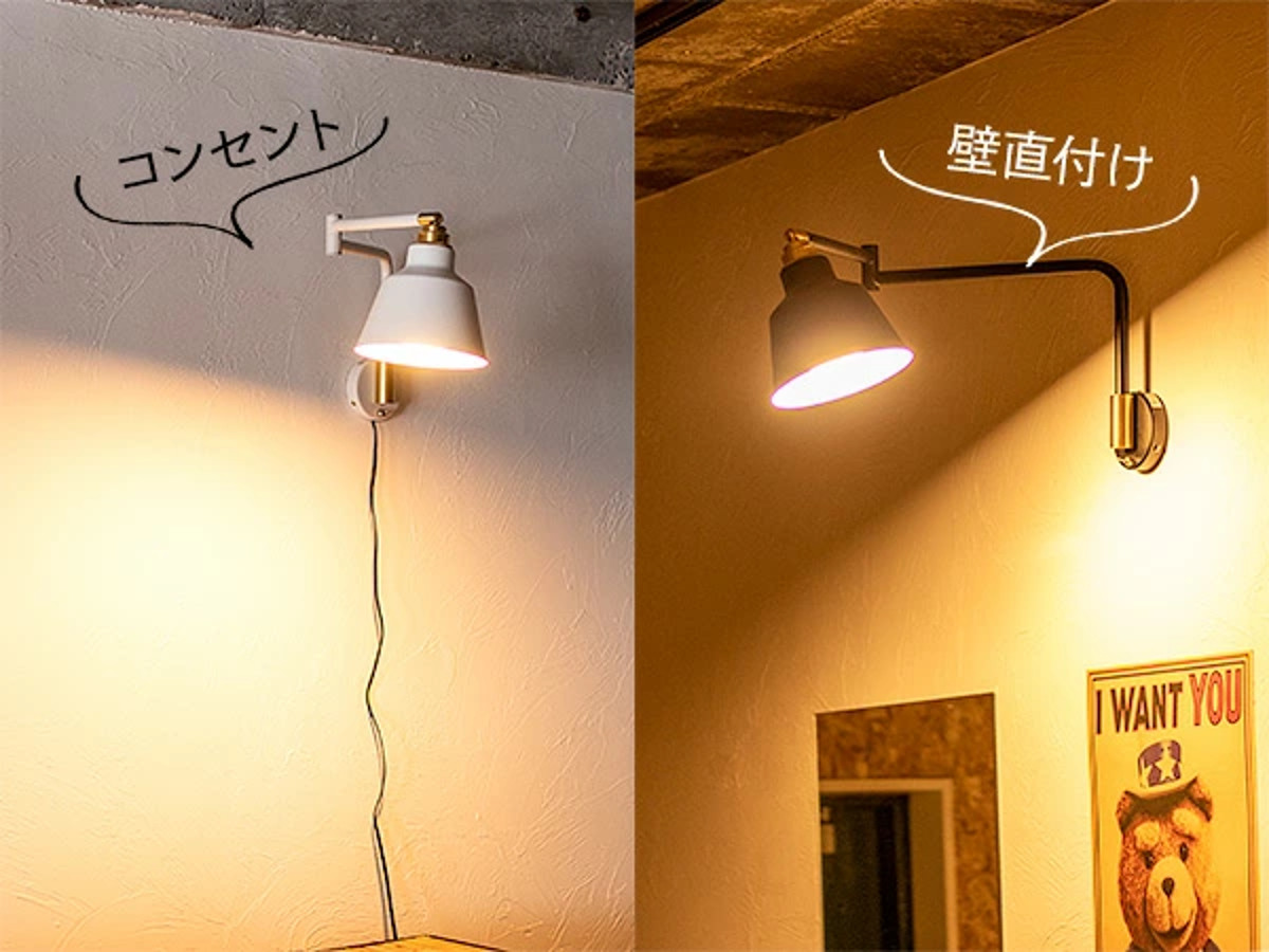電源のとり方は、コンセントと壁から直接とる直付けと両方に対応しています。コンセントだと場所を気にせず気軽に取り付けできます。壁直付けだとコードが見えないのでスッキリした印象に。