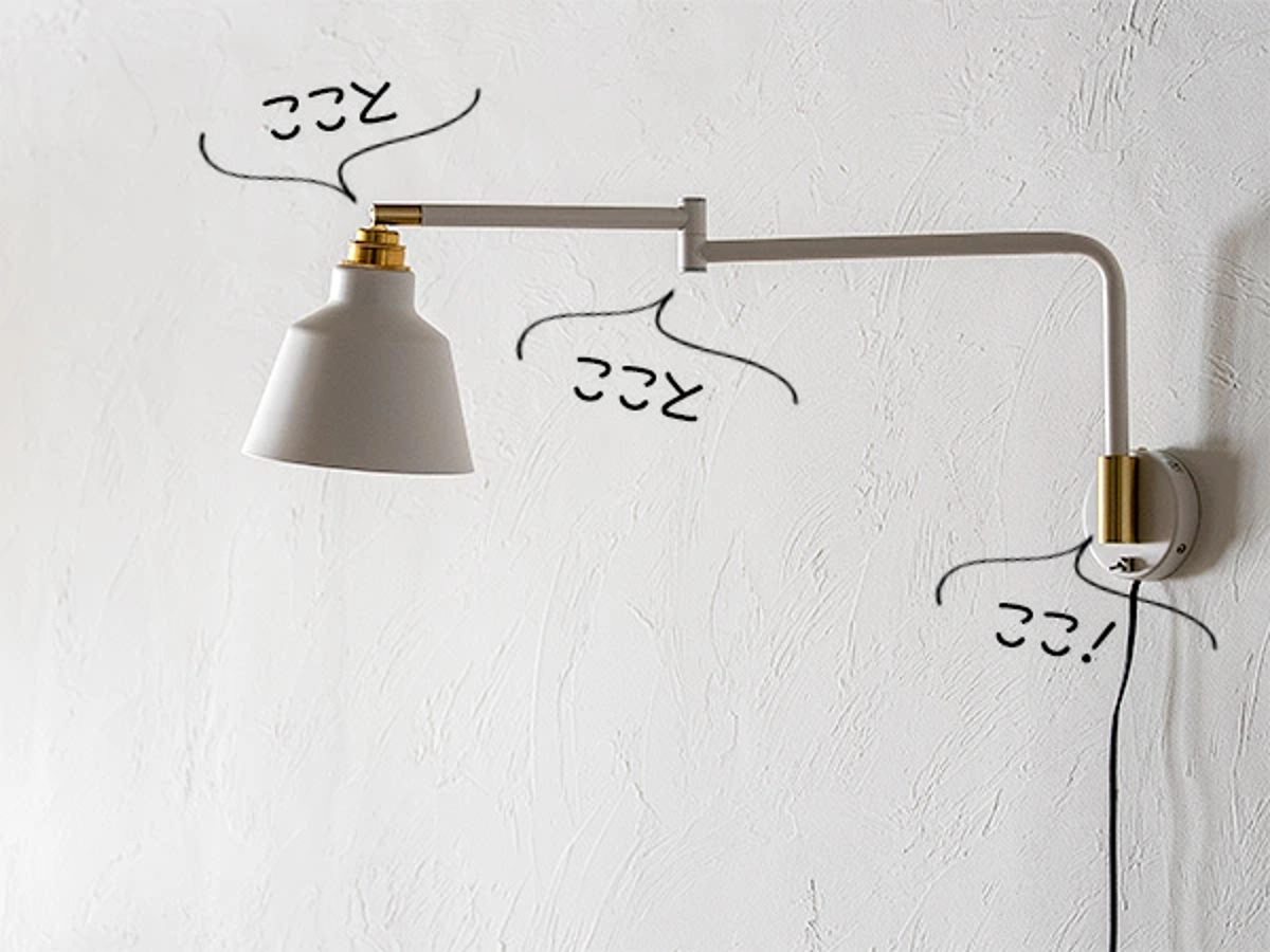 スポットライト部分、アームの中間部分、アームの付け根部分の3箇所が動かせます。アームは左右に回転、スポットライトは上下左右に回転します。
