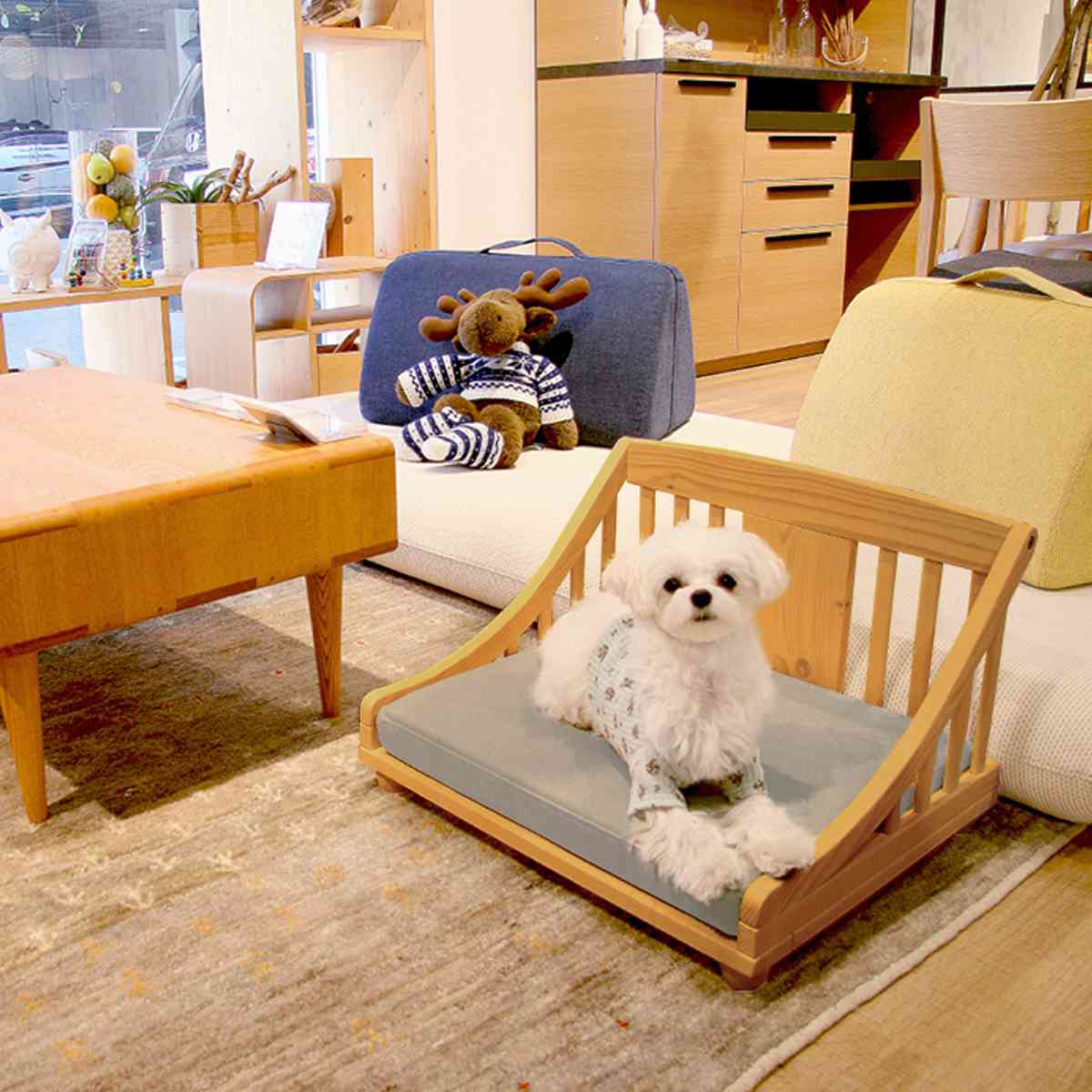 ぬくもりの天然木、暮らしにやさしいペット用ベッド