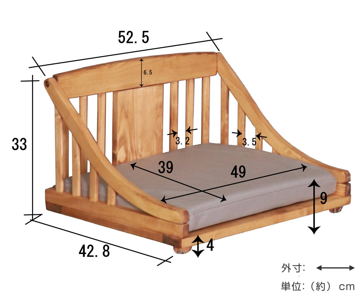 | 材質 | 本体:北欧パイン材、天然オイル仕上げ クッション生地:表(ポリエステル100%)、裏地(ポリエステル100%、メッシュ地) クッション材:ポリウレタンフォーム |
