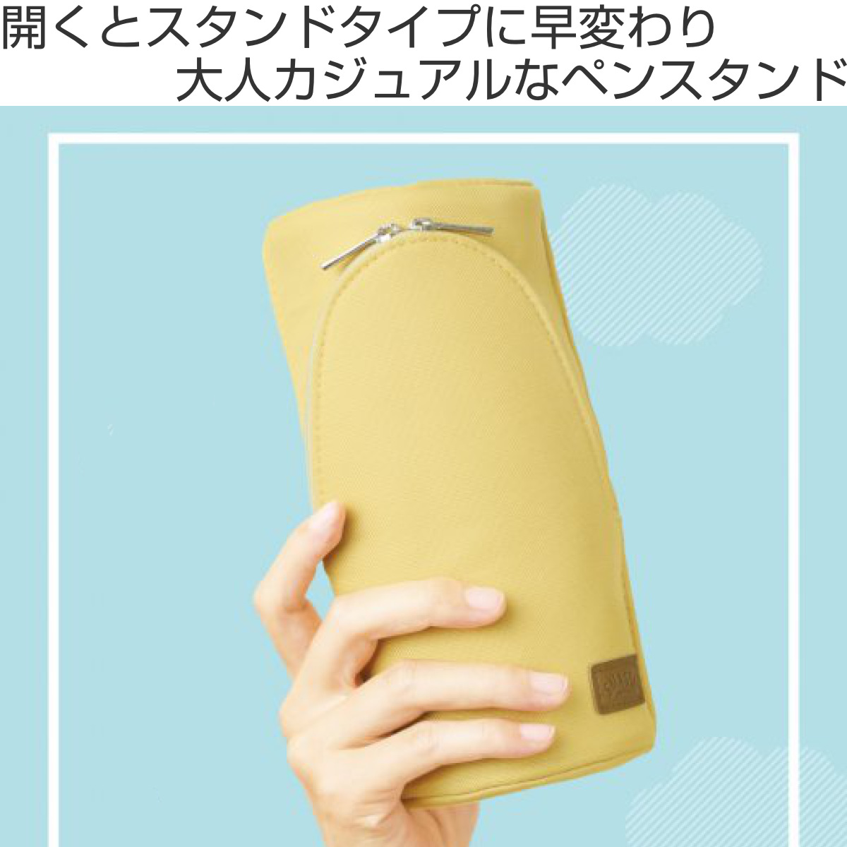 使う時はケースを開くだけで、ペンスタンドとして使えるペンケースです。デスクの上に置けば、ペンや文具を立ててすっきり整理できます。