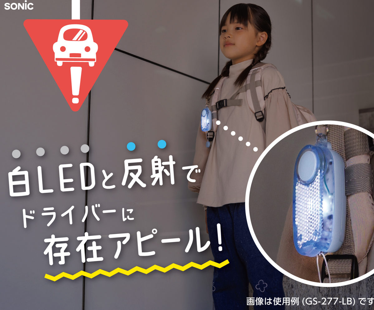 下校時や習い事の帰り道でも安心。白色ライト+リフレクターでドライバーに存在をアピールし、夜間の交通事故防止に役立ちます。