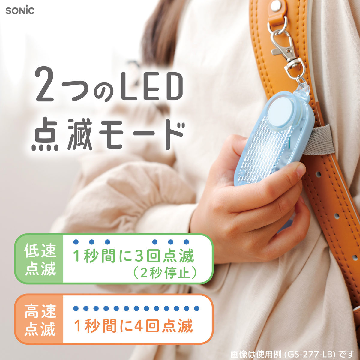 ■低速点滅:1秒間に3回点滅、2秒停止(連続点滅:約350時間)