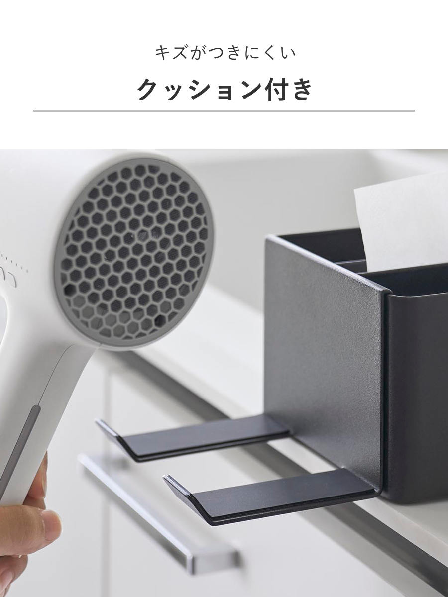 ホルダー部にはシリコーン製のクッション付きで、ドライヤーにキズがつきにくく安心して収納できます。