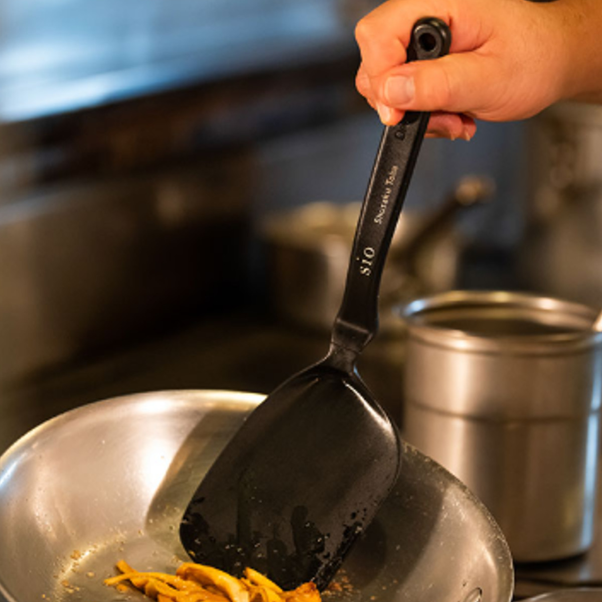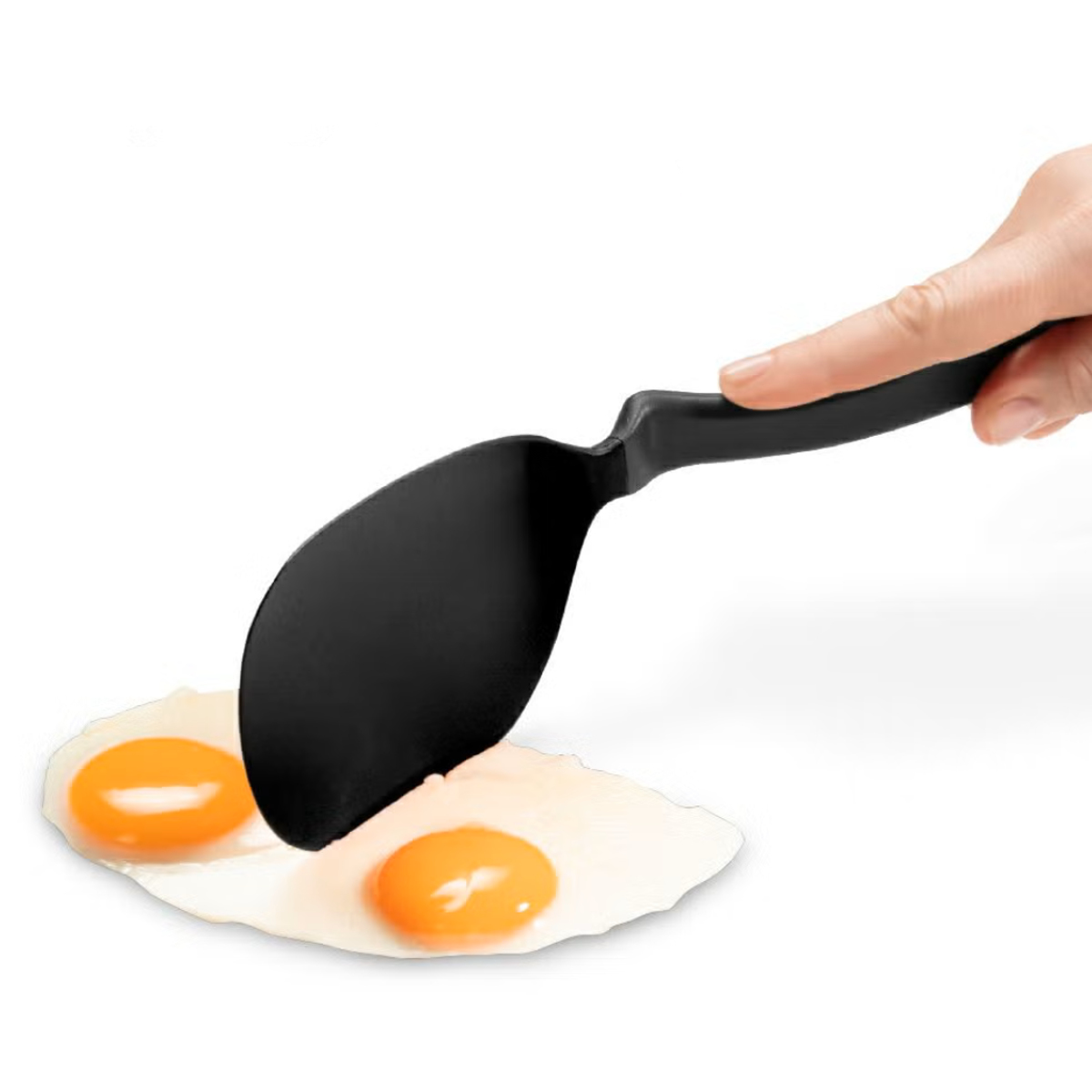 食材の下にスッと差し込みやすいフライ返しです。薄く柔軟性があり、繊細な食材も崩しにくく、きれいな仕上がりをサポートします。しなりのあるヘラ部分がフライパンに沿い、ストレスなくすくい上げることができます。