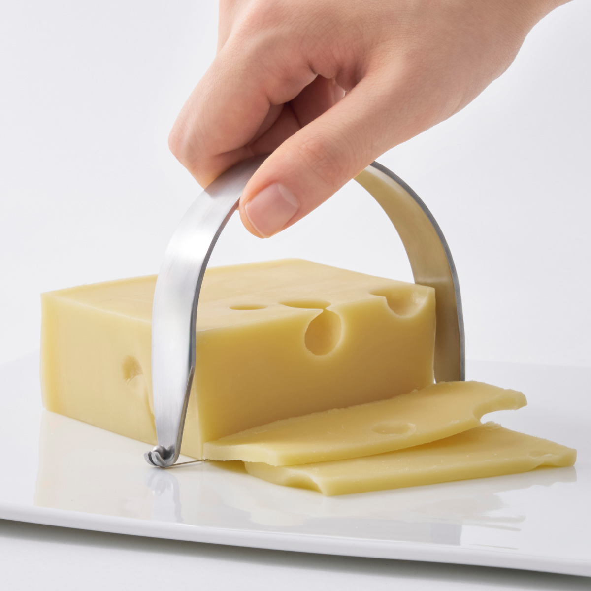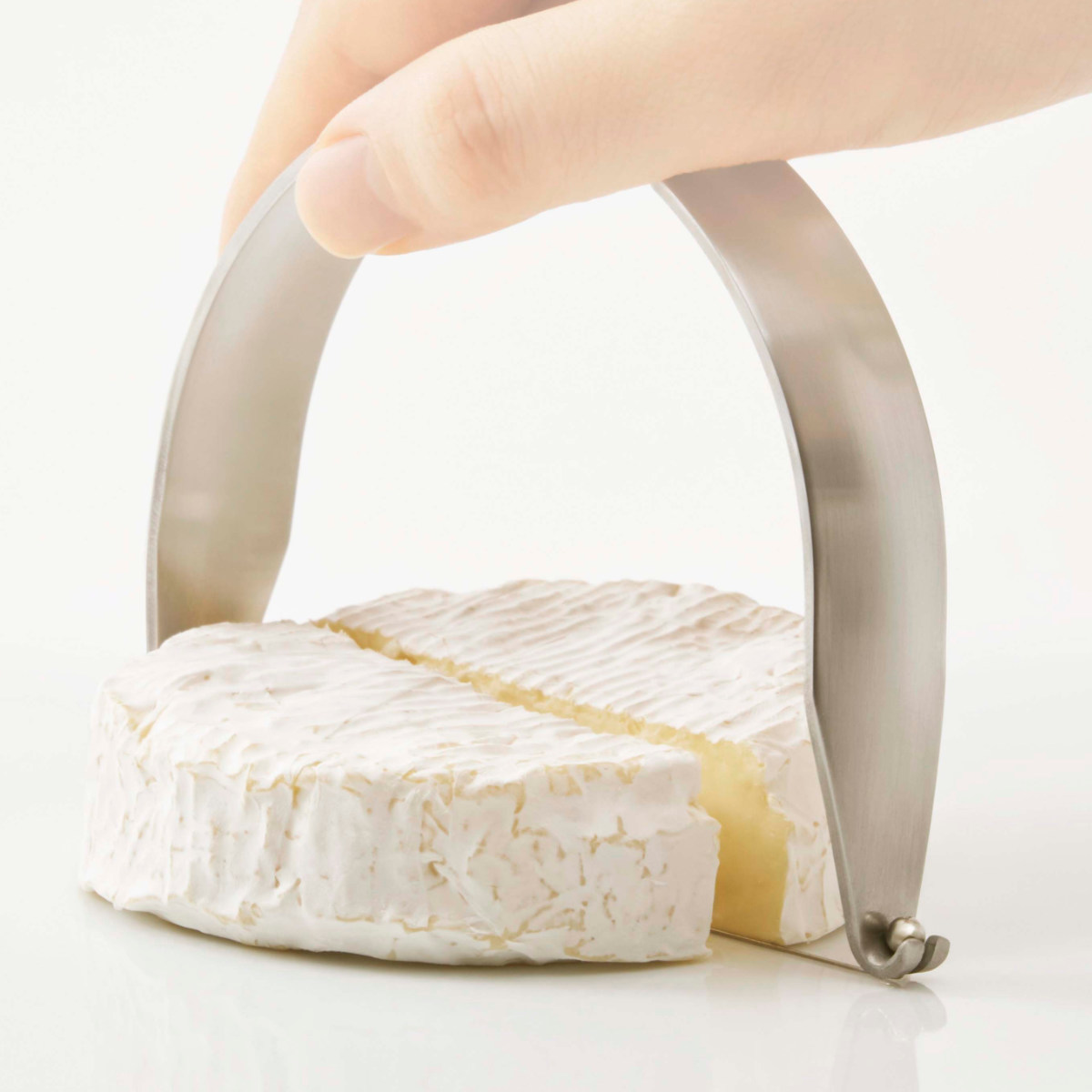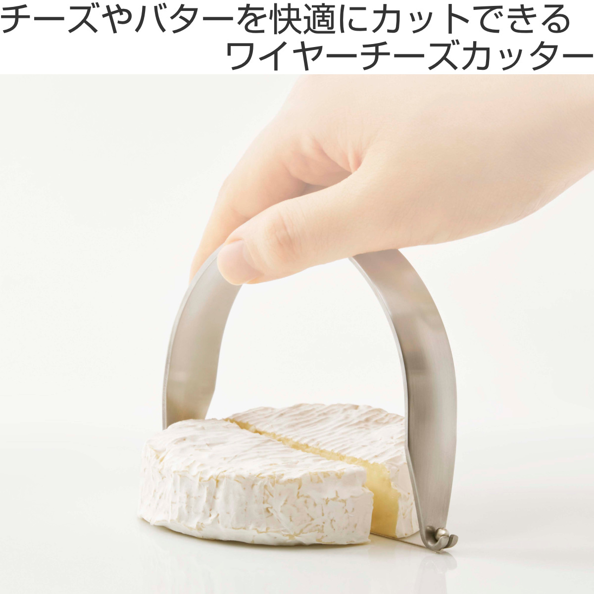 ワイヤー刃でチーズをすっとカットできるチーズカッターです。食材がくっつかず、きれいな断面に仕上がります。チーズはもちろん、バターやゆで卵なども快適に切ることができます。