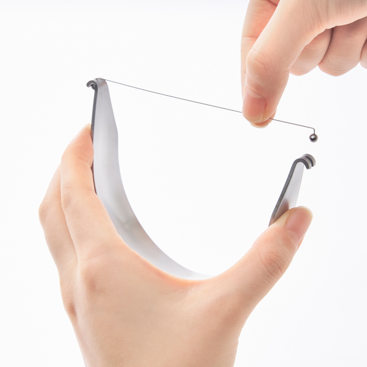 ワイヤー刃は卓上でも扱いやすく、安全性にも配慮しています。置いたときに先端が浮くため、机や調理台に触れず清潔に使えるのも嬉しいポイントです。