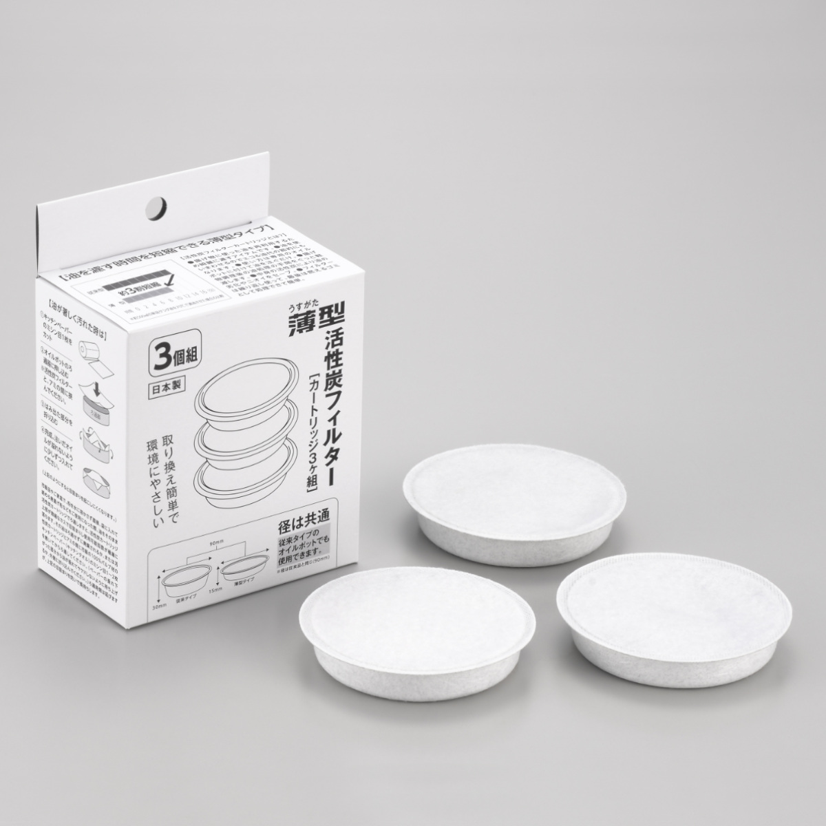 オイルポット交換用フィルター 薄型活性炭フィルター カートリッジ 3個入り 日本製